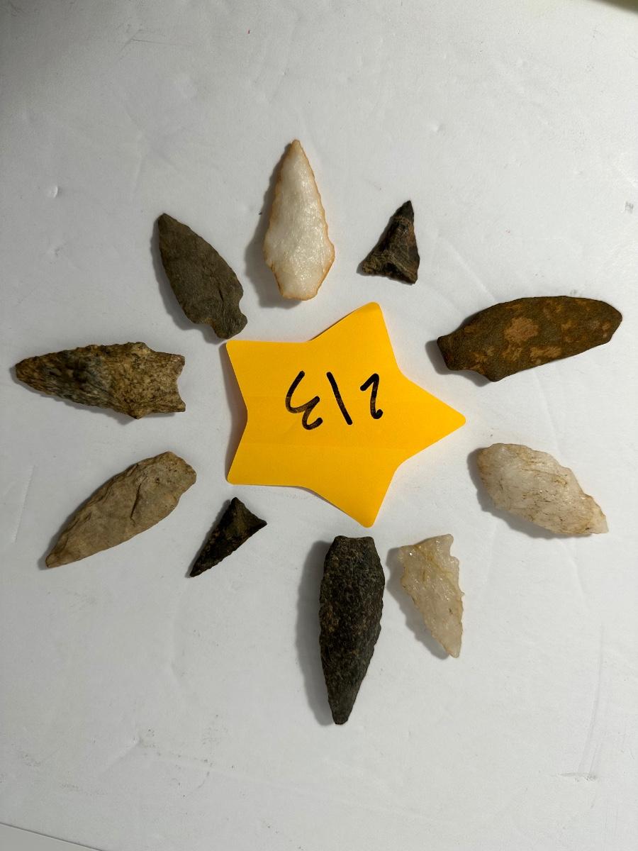 Indian Artifact Arrowhead Lot, 10 pieces, as pictured