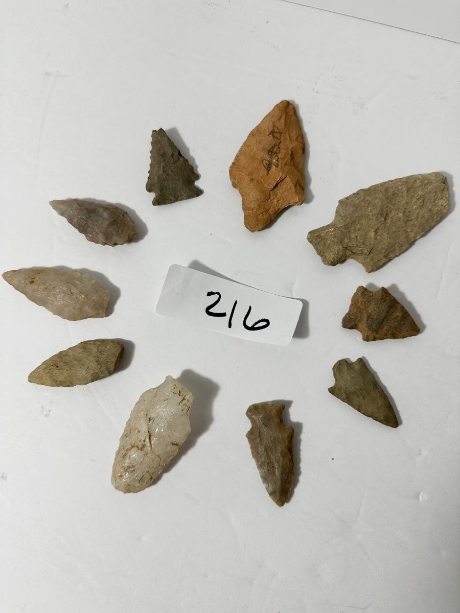 Indian Artifact Arrowhead Lot, 10 pieces, as pictured
