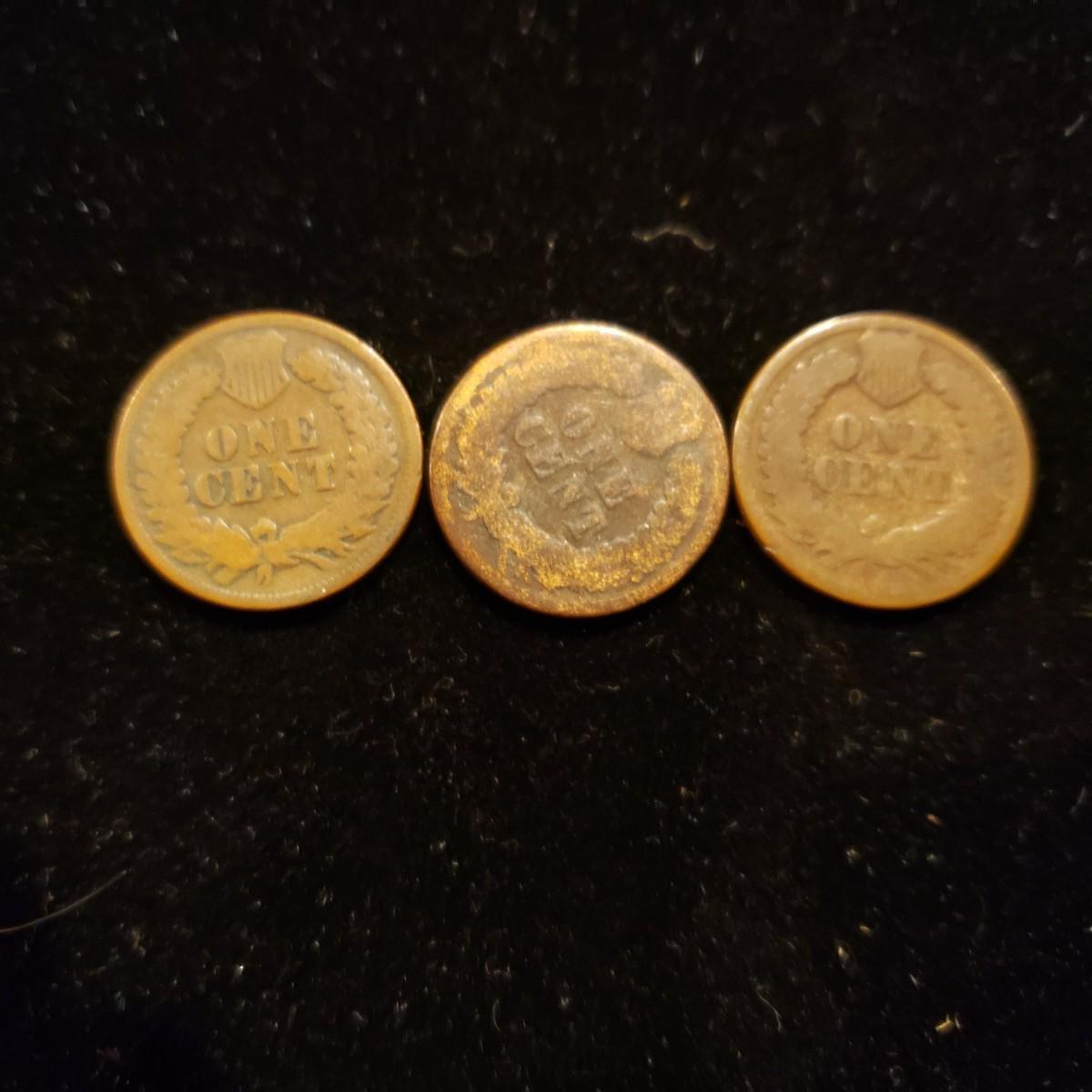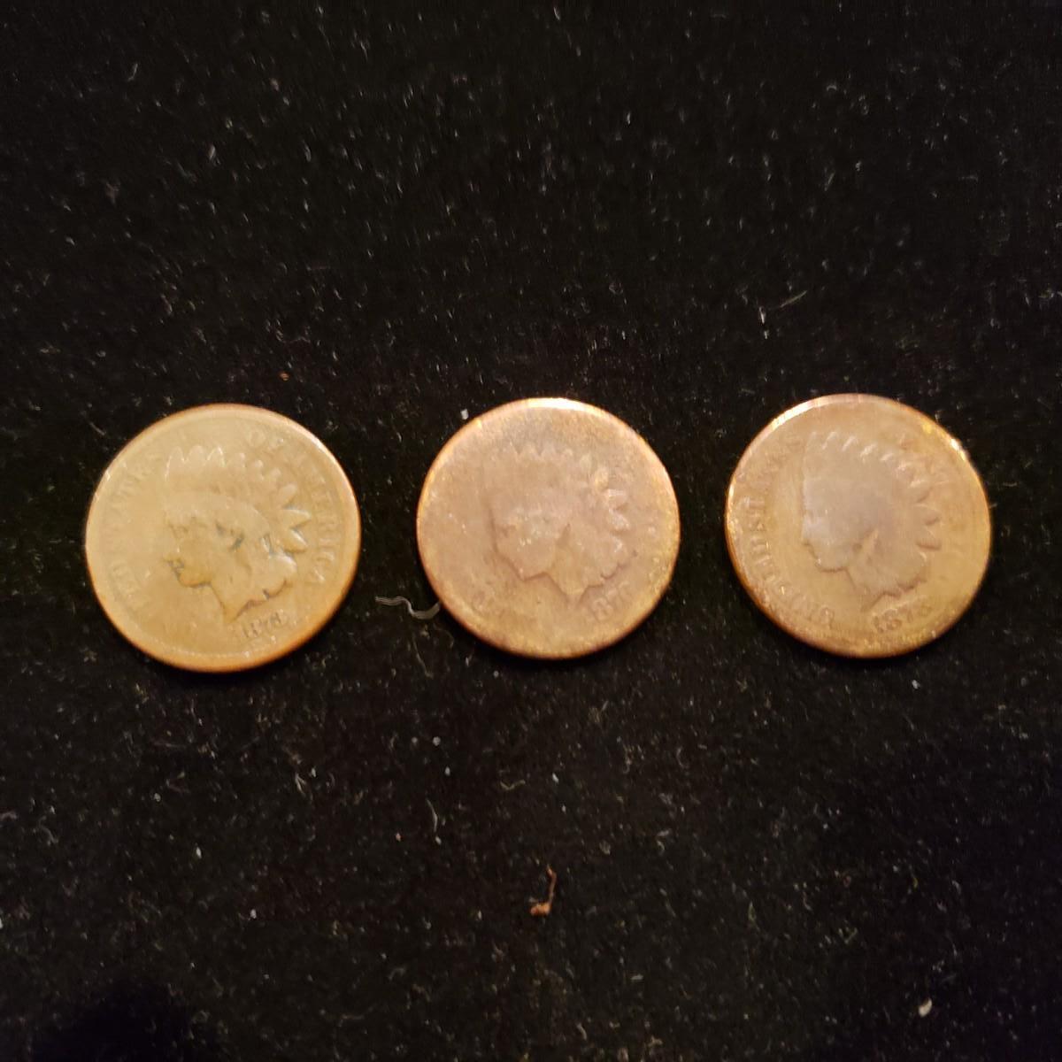 Indian Cents 1873, 1876, 1878 lot of 3 coins