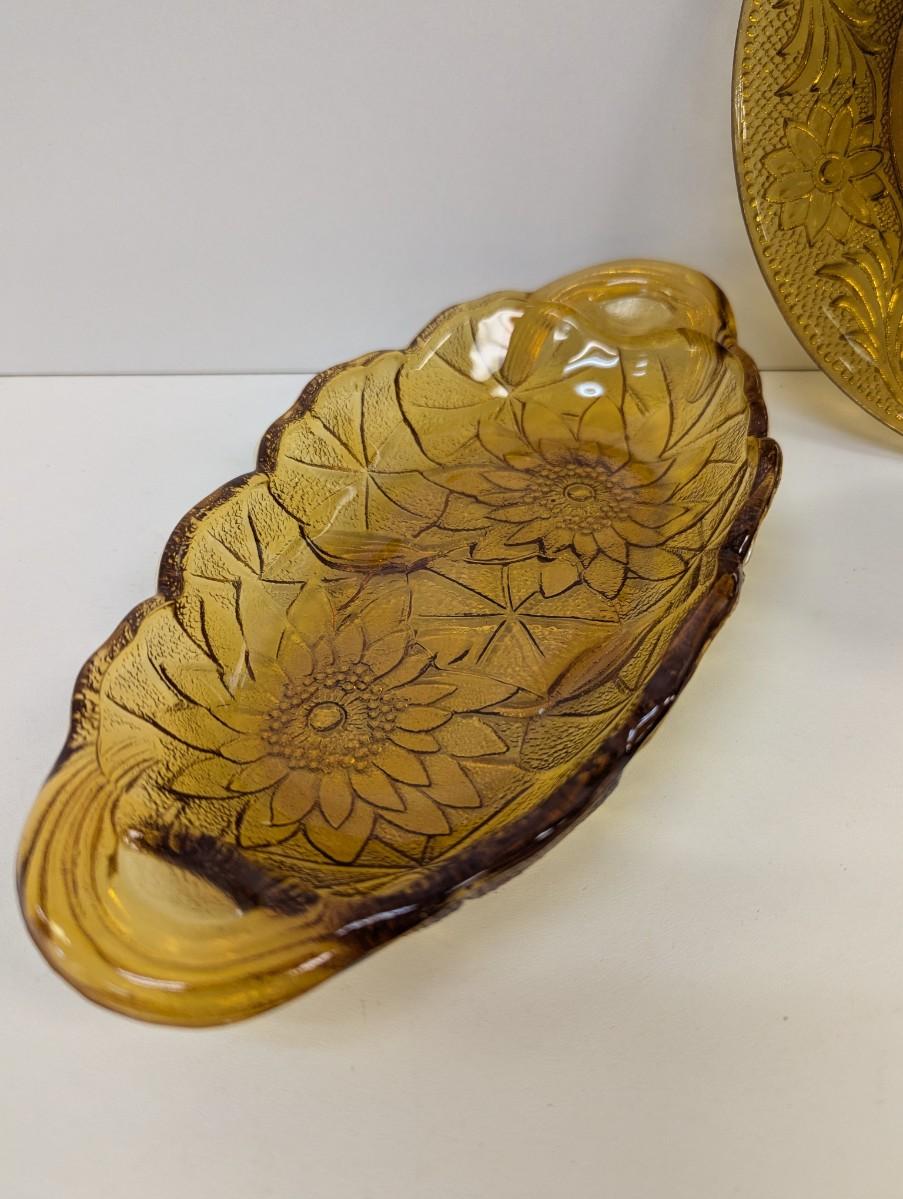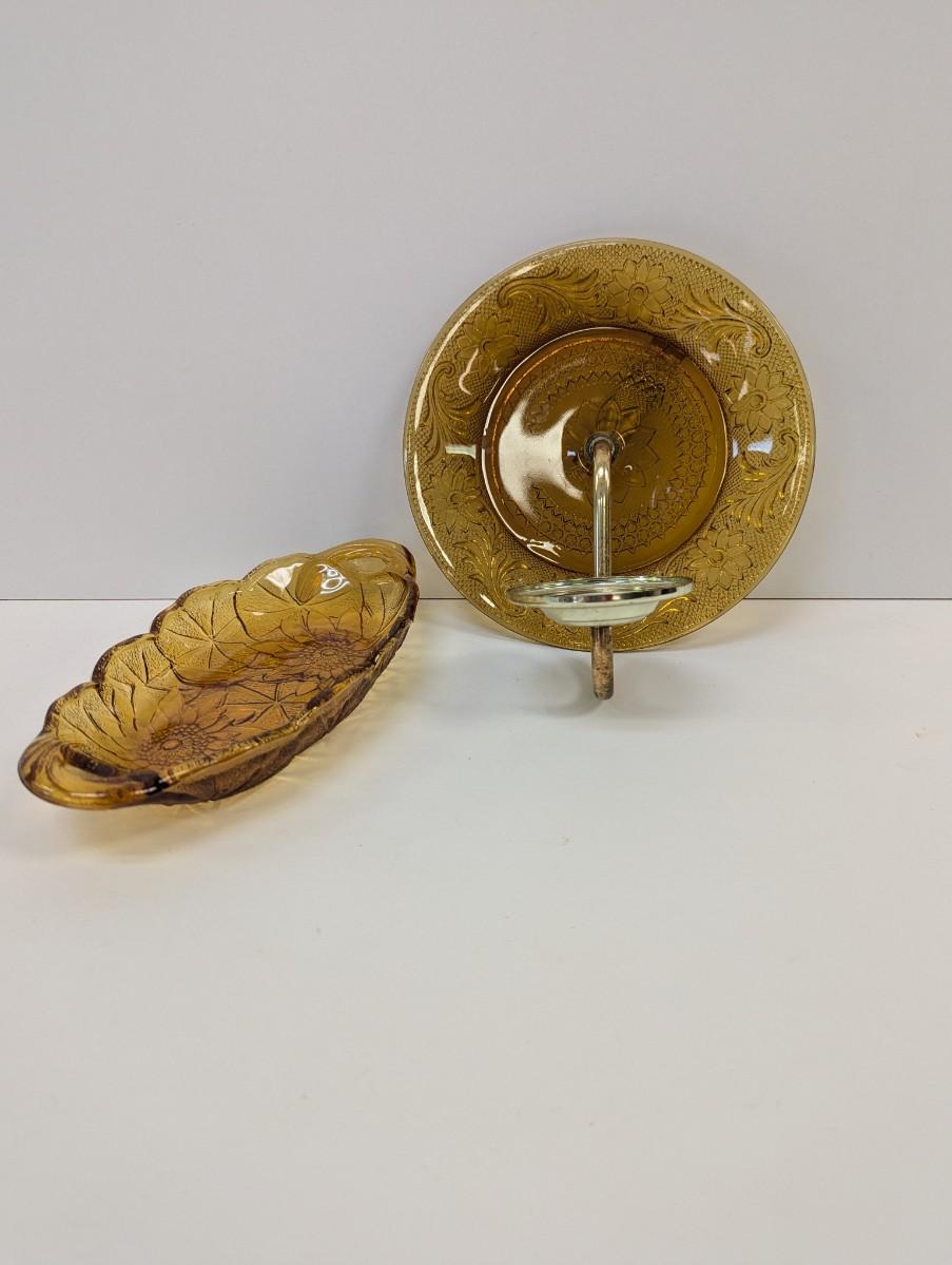 Indian Glass Tiara Sandwich Amber Candy Dish & Candle Holder