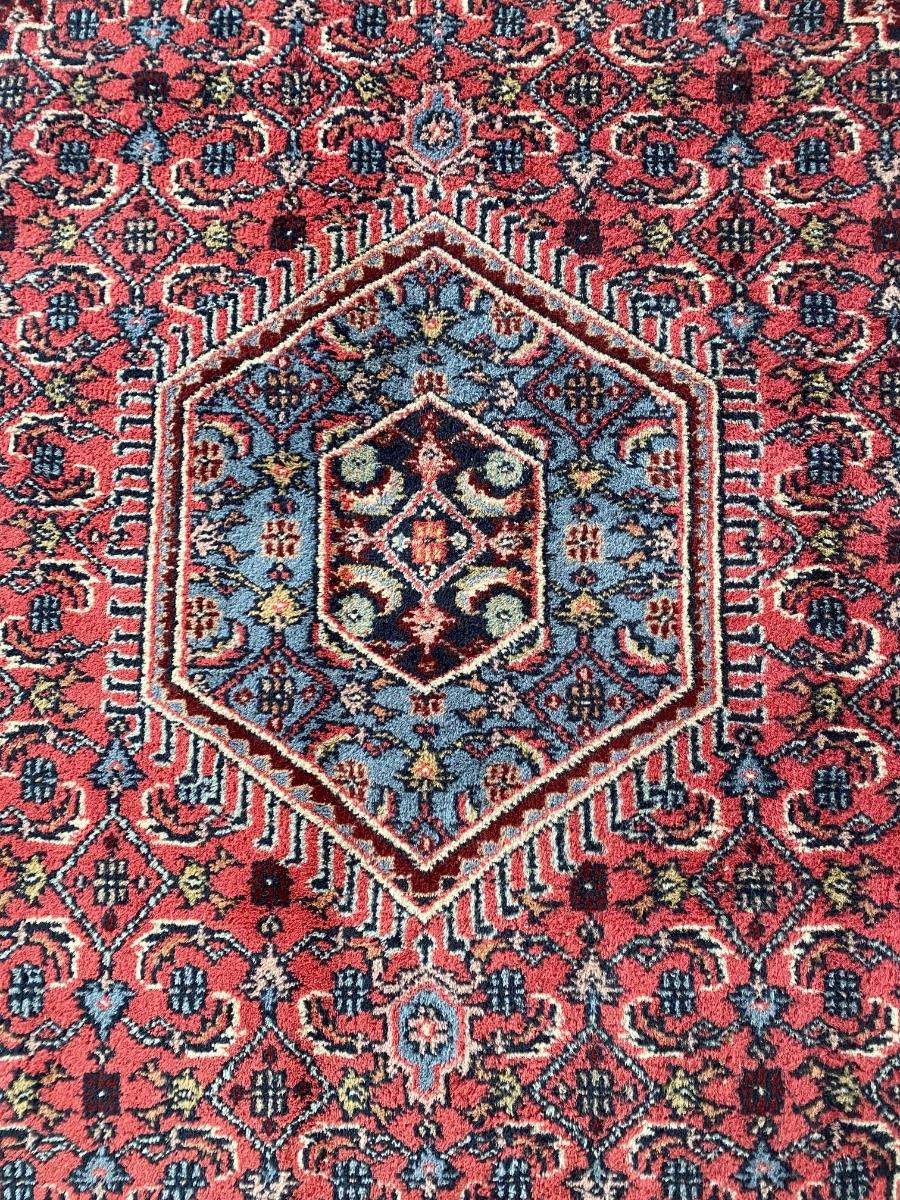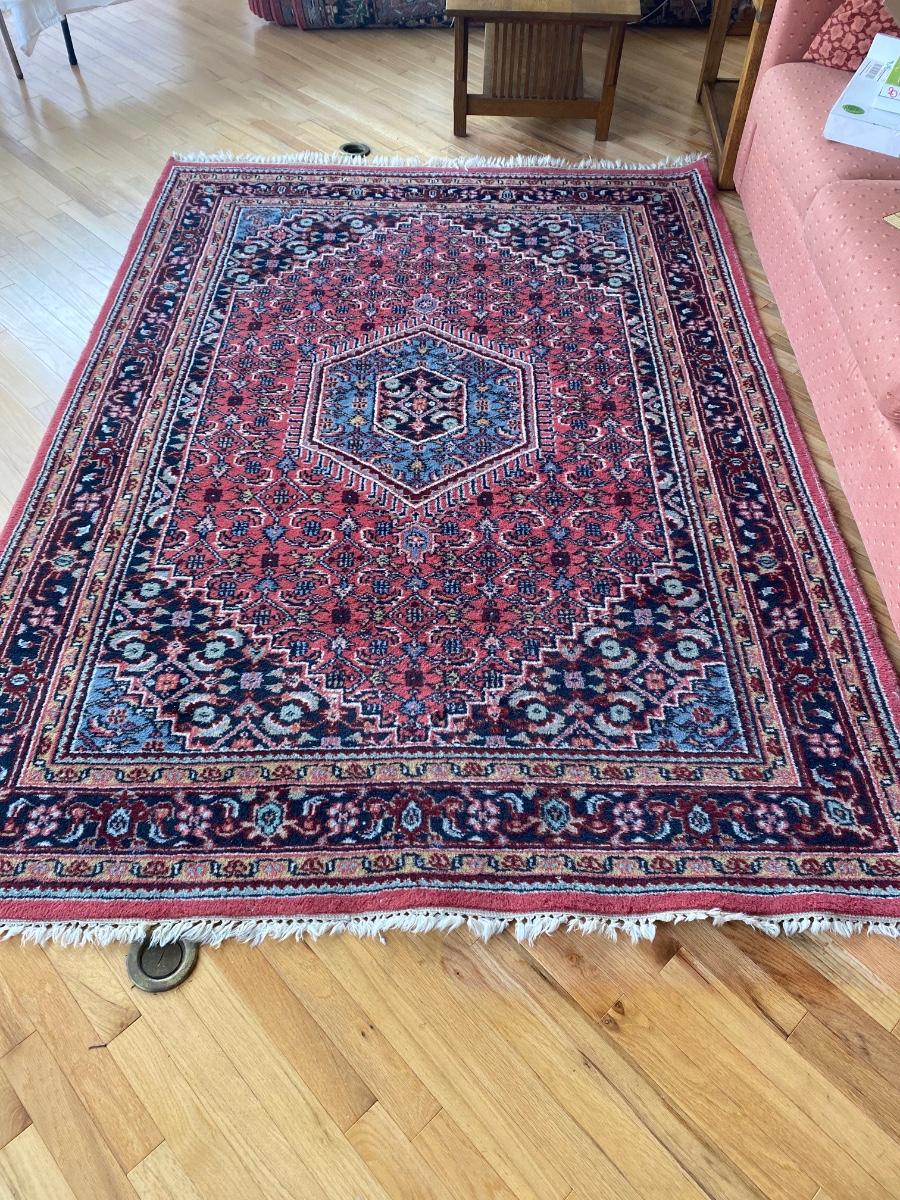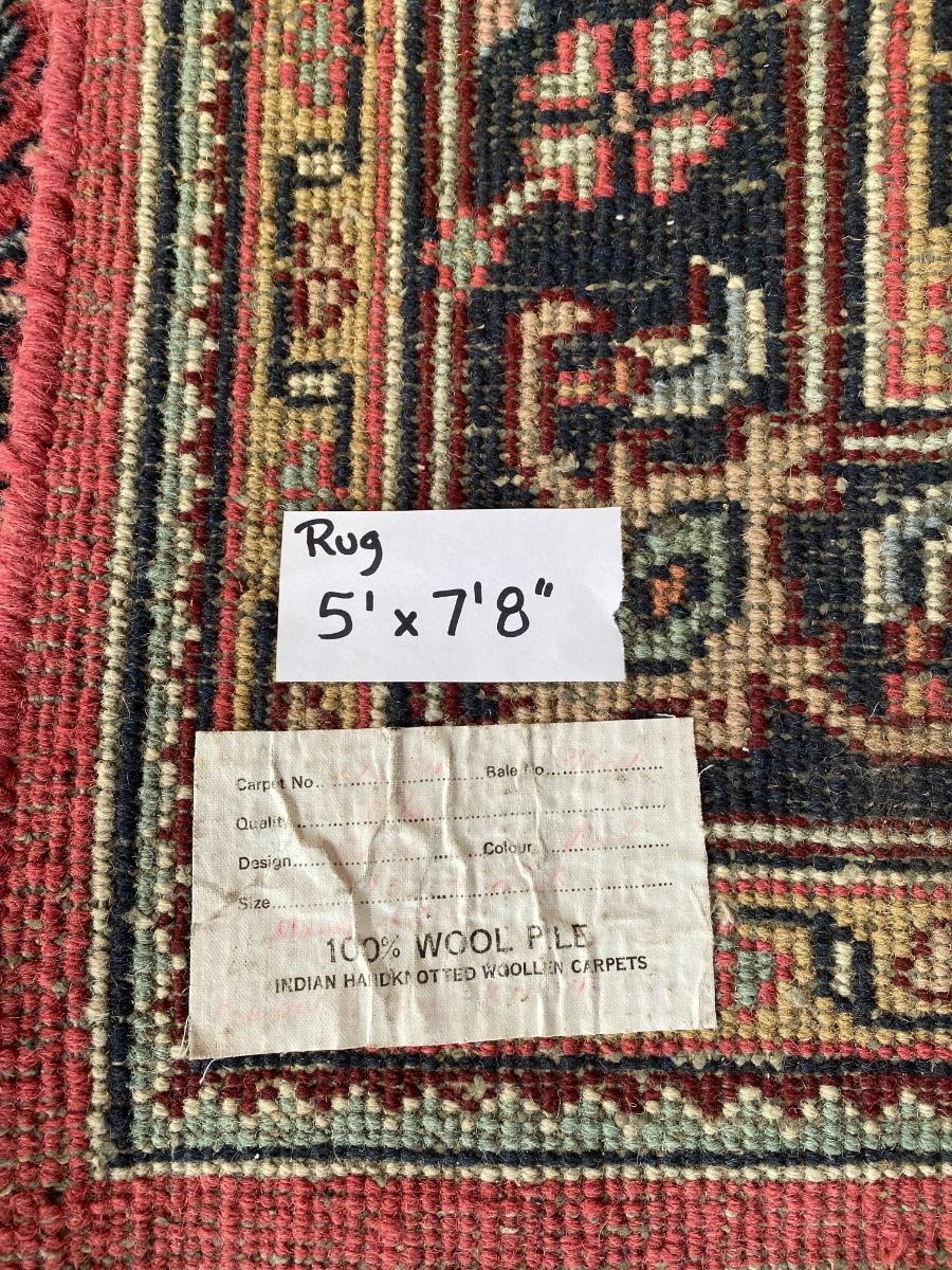Indian hand knotted 100% wool rug. 5’ x 7’8”. VG condition