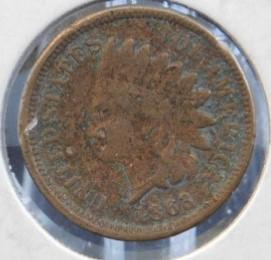 Indian Head 1863 US Mint One Cent Piece Circulated