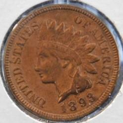 Indian Head 1893 US Mint One Cent Piece Circulated AU