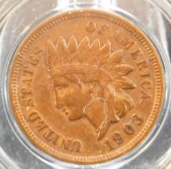Indian Head 1903 US Mint One Cent Piece Circulated AU