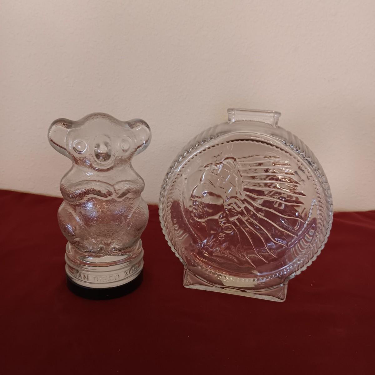 INDIAN HEAD GLASS COIN BANK AND SAN DIEGO ZOO GLASS JAR