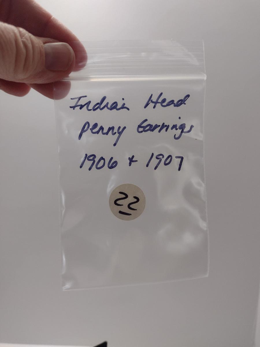 Indian Head Penny Earrings (#22). Pennies are dated 1906 and 1907.