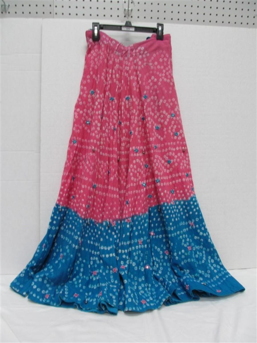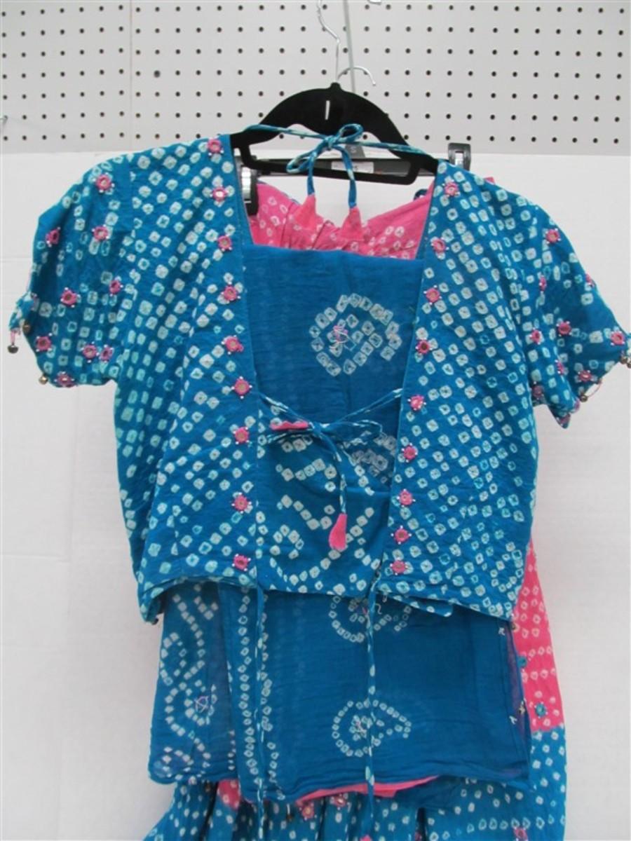 INDIAN SARI SAREE 3 PC BLUE PINK & WHITE WITH BELLS RHINESTONES & MIRRORS BONUS TOP