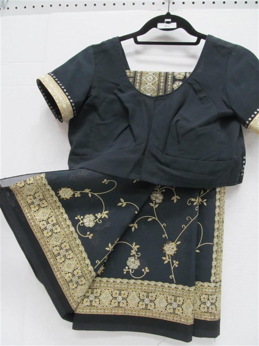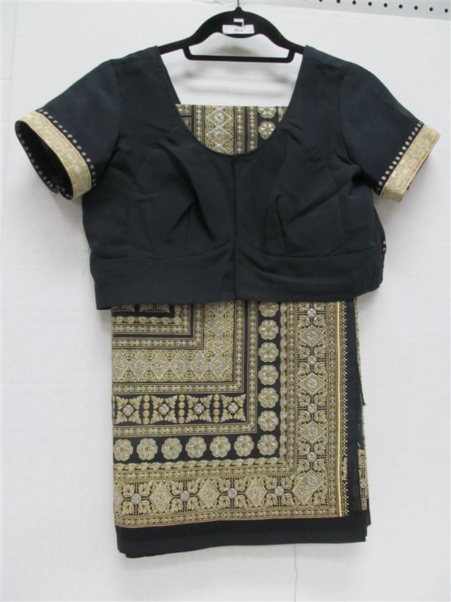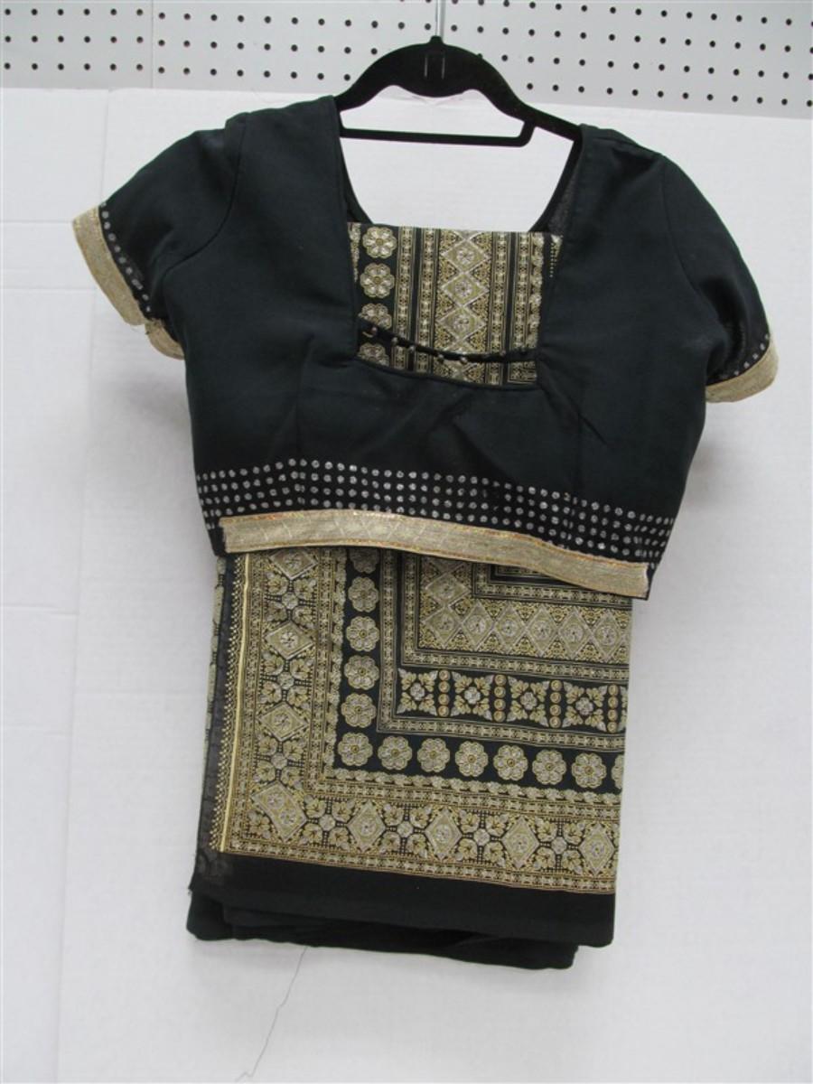 INDIAN SARI SAREE BLACK GOLD BONUS TOP