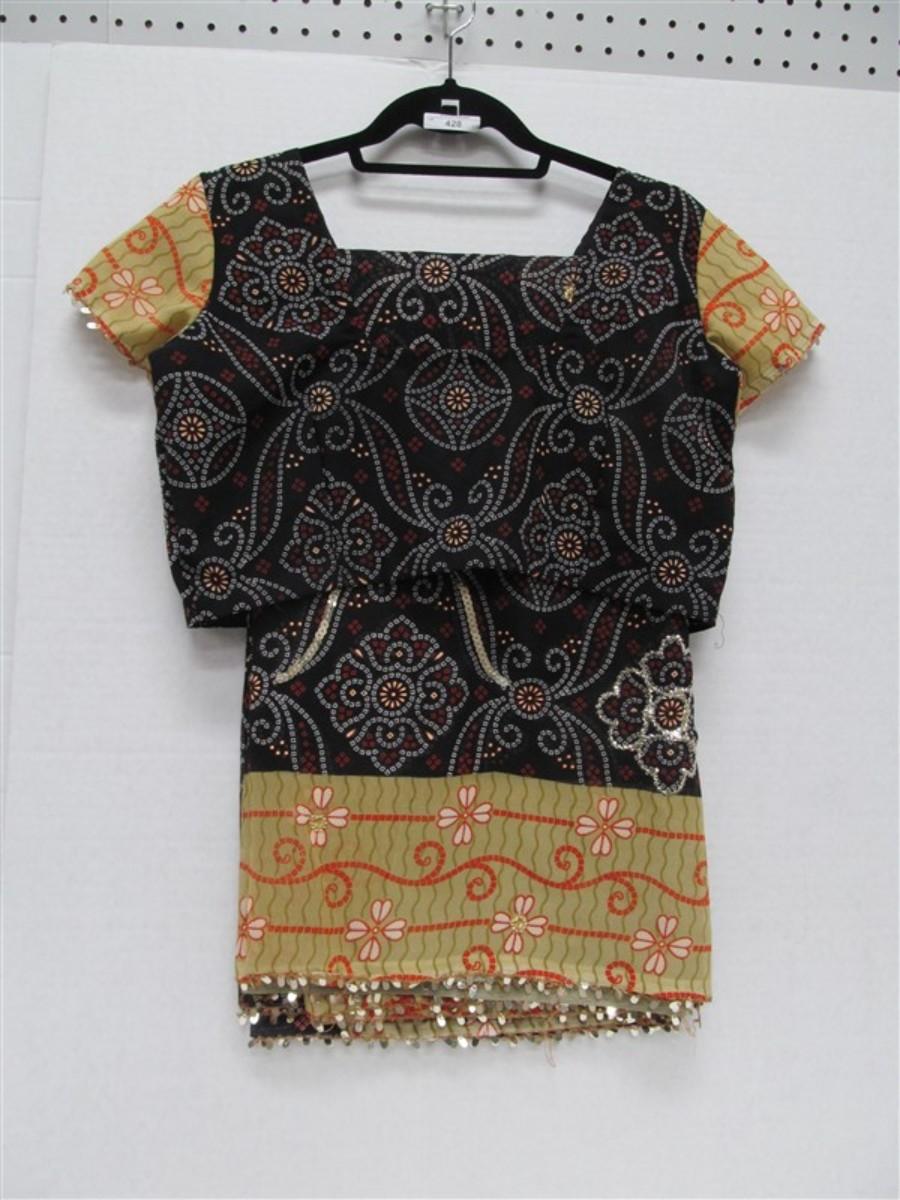 INDIAN SARI SAREE BLACK RED & WHITE WITH WITH GREEN & RED TRIM WITH RHINESTONES &SEQUINS BONUS TOP