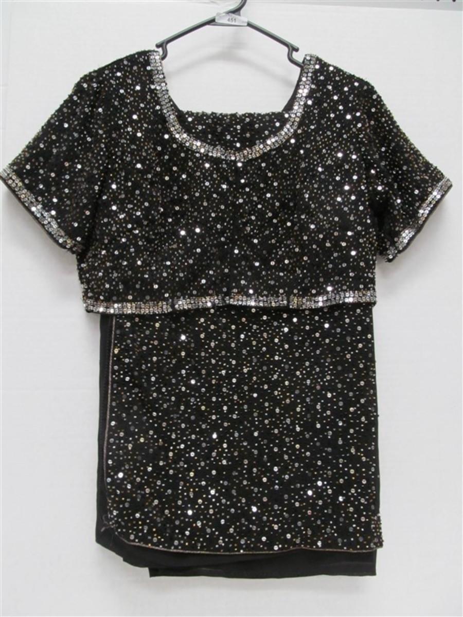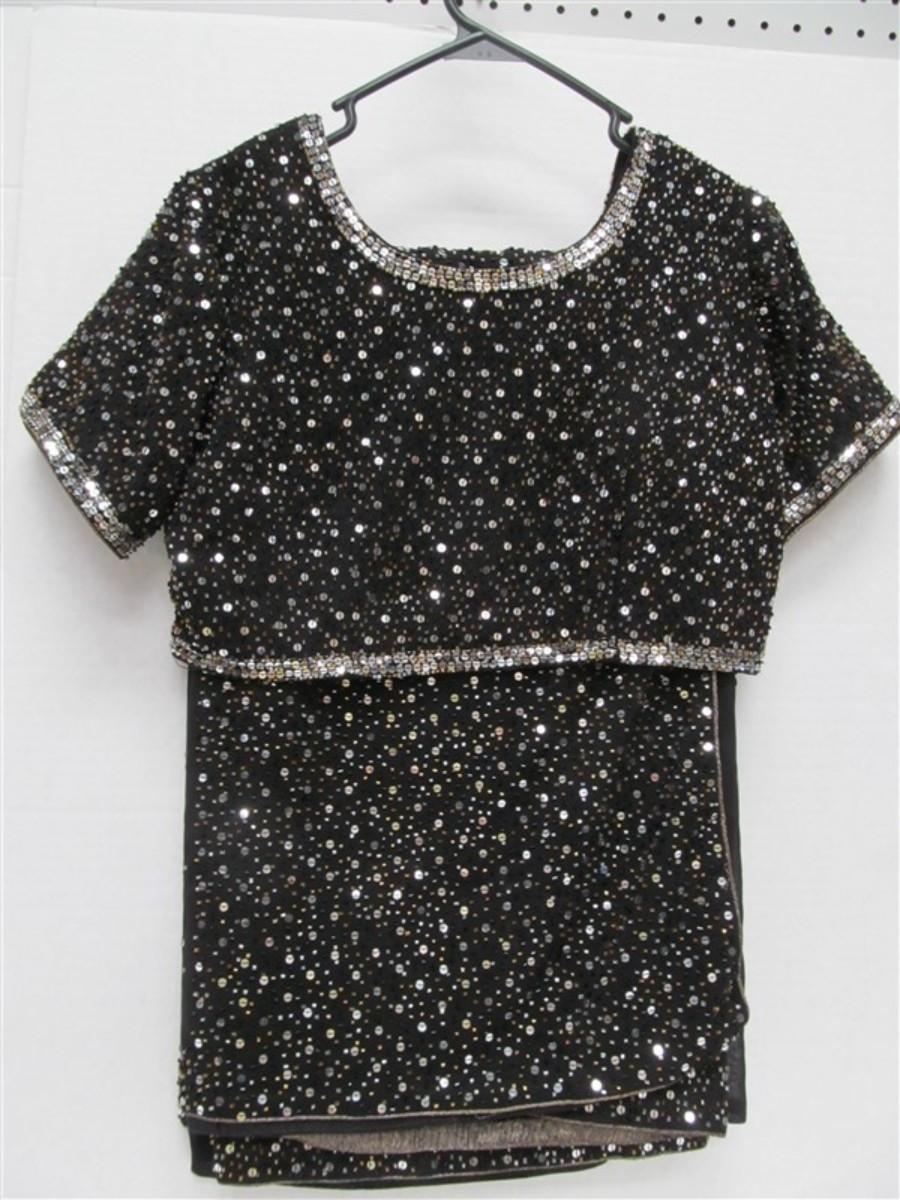 INDIAN SARI SAREE BLACK WITH SEQUINS & BEADS BONUS TOP