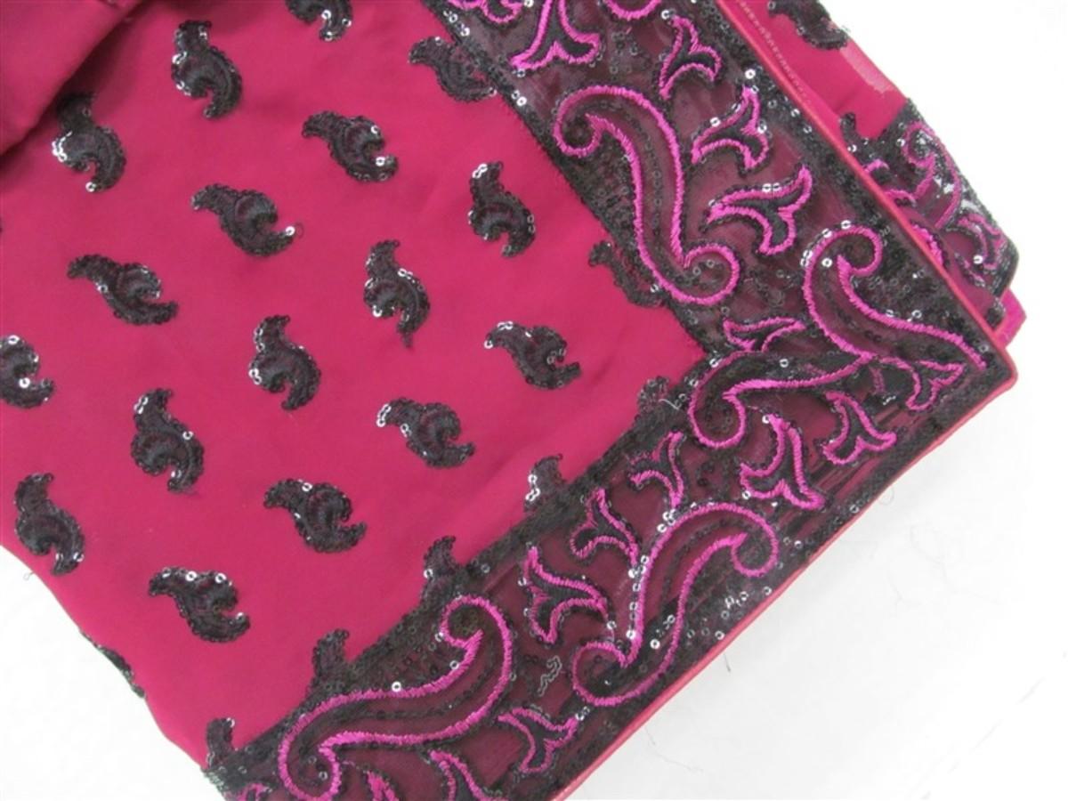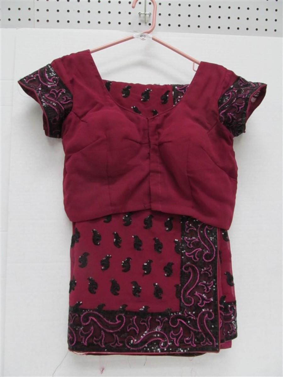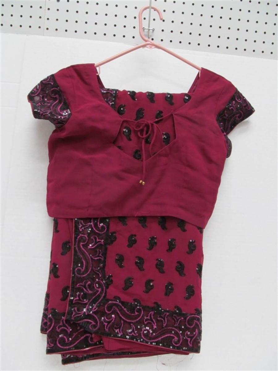 INDIAN SARI SAREE BURGUNDY WITH BLACK SEQUINS PURPLE & BLACK SEQUINED TRIM BONUS TOP
