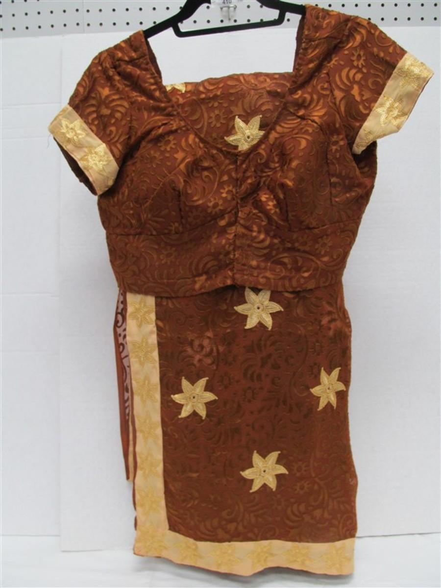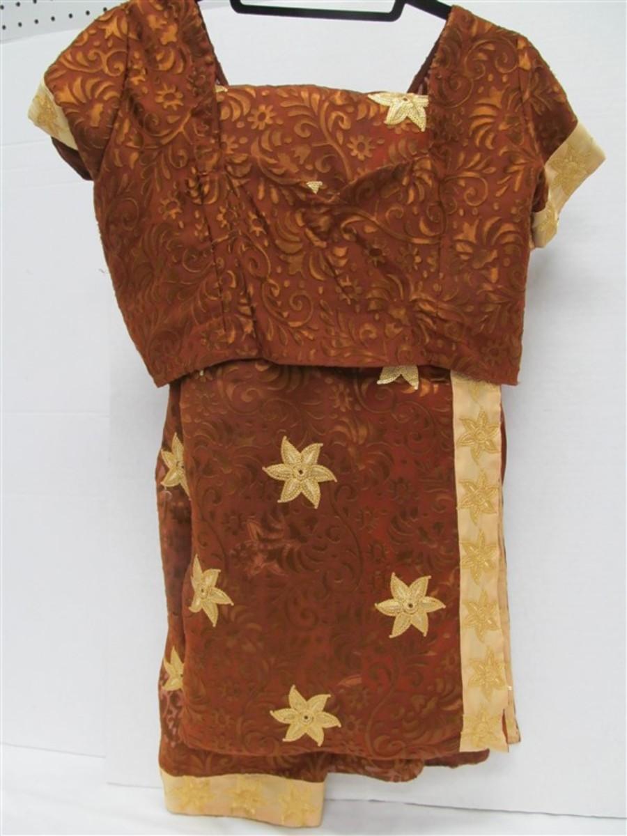 INDIAN SARI SAREE COOPER & GOLD WITH GOLD SEQUINED TRIM BONUS TOP