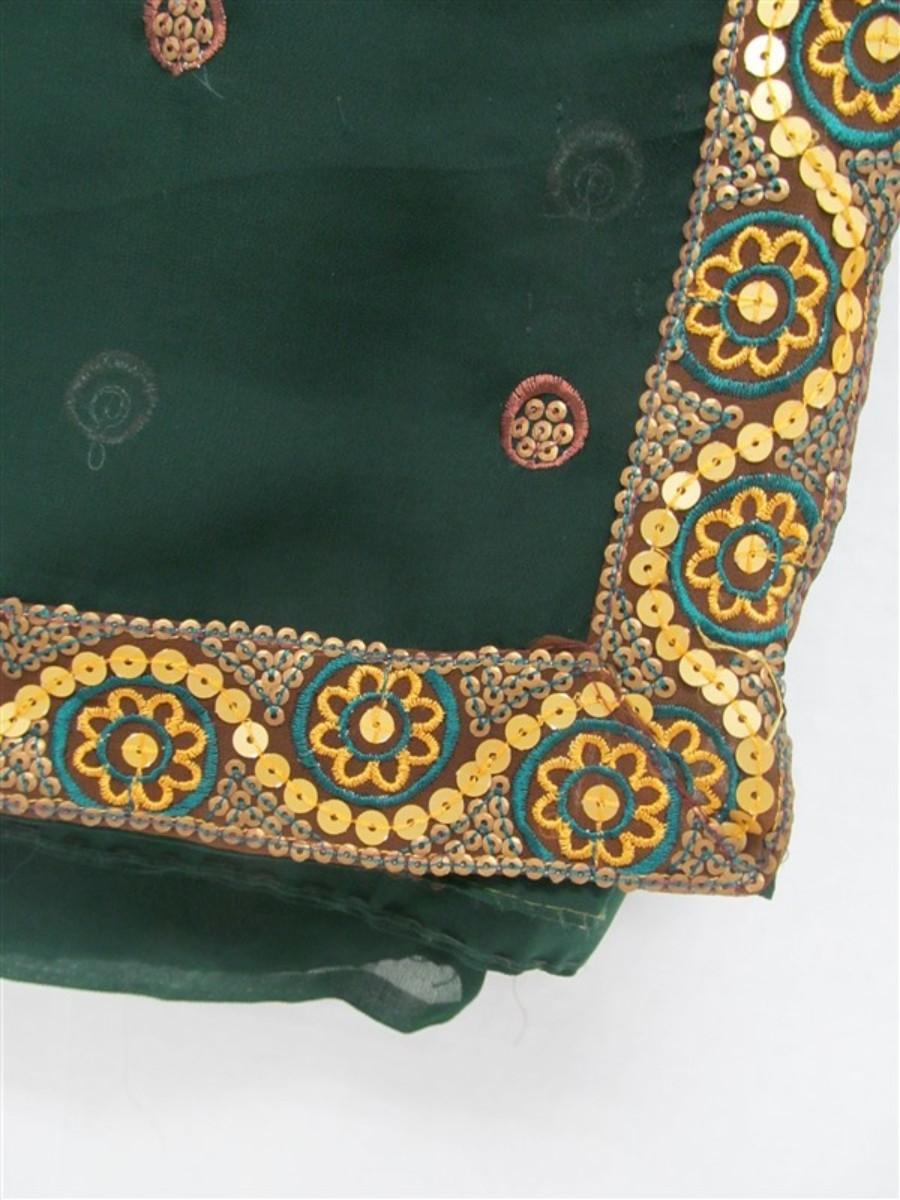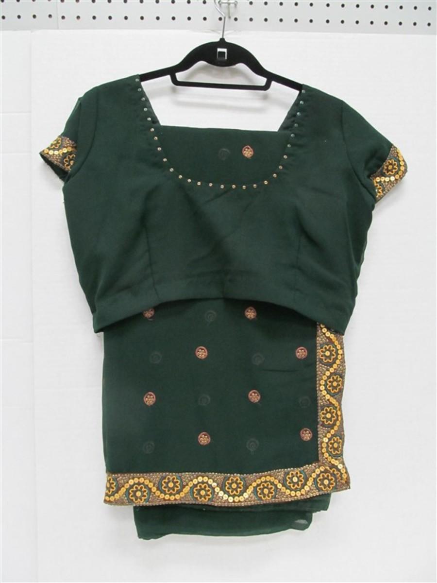 INDIAN SARI SAREE EMERALD GREEN WITH GOLD SEQUINED TRIM BONUS TOP