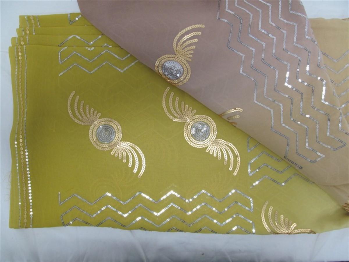 INDIAN SARI SAREE FABRIC BEIGE & GOLD & SILVER