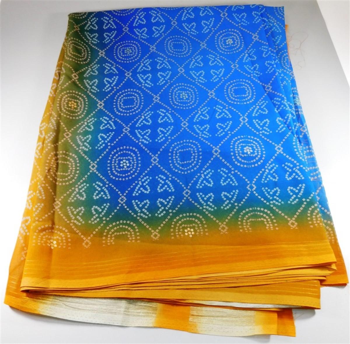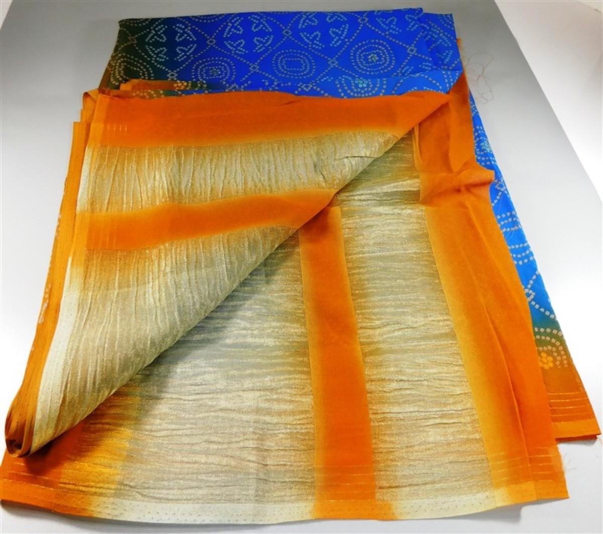 INDIAN SARI SAREE FABRIC BLUE AND ORANGE