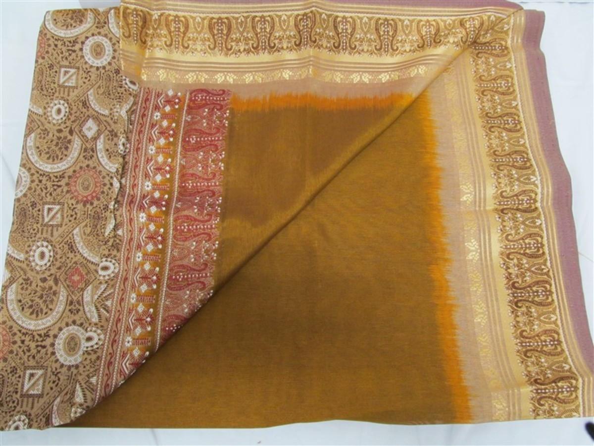 INDIAN SARI SAREE FABRIC BROWN & GOLD