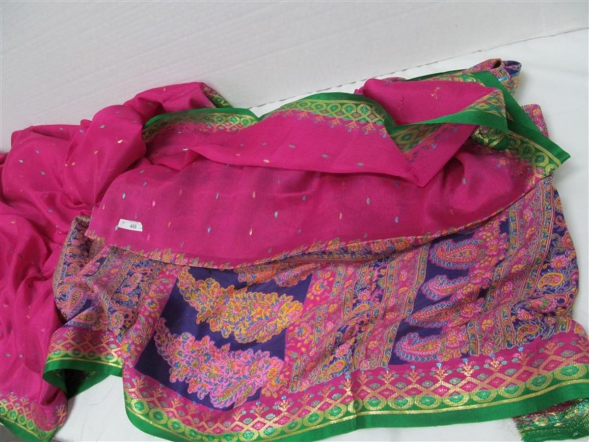 INDIAN SARI SAREE FABRIC FUCHSIA GREEN PURPLE GLITZ