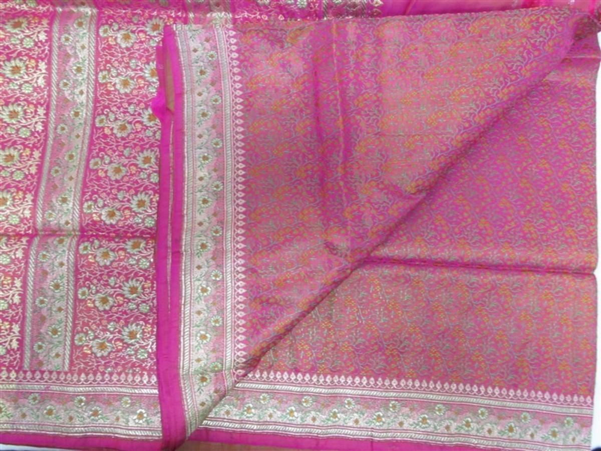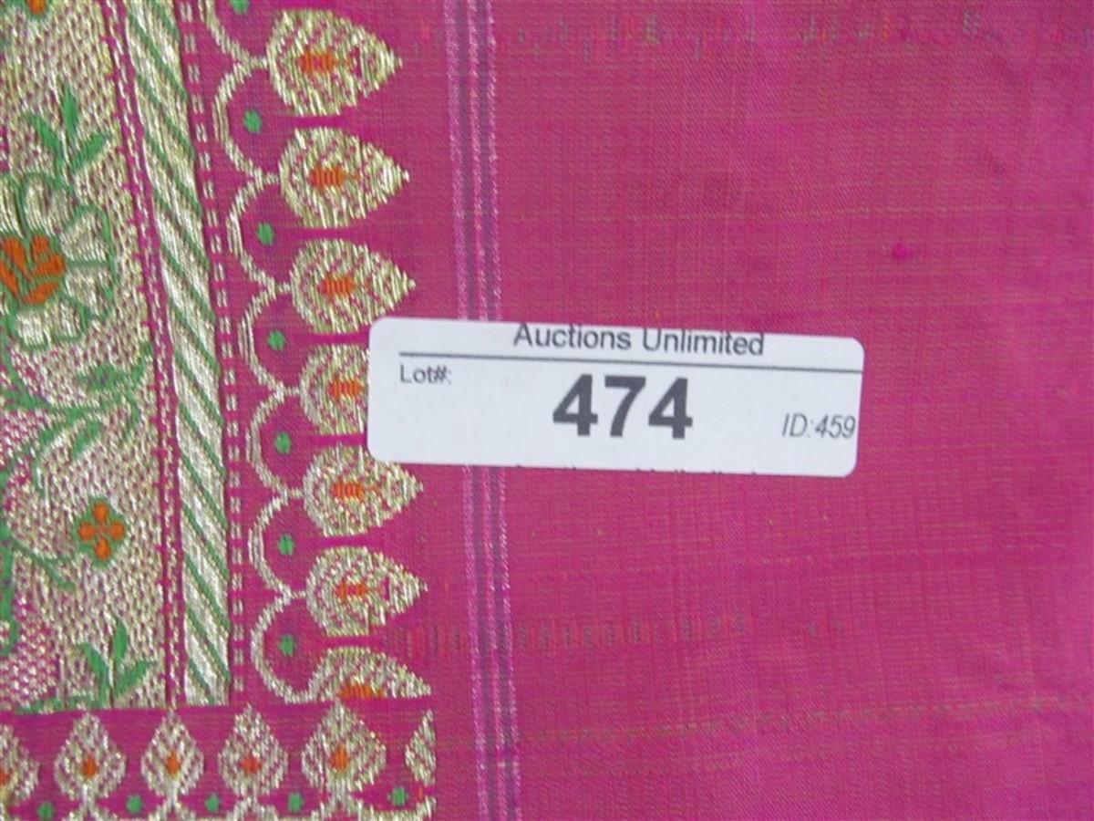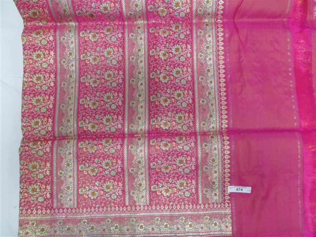 INDIAN SARI SAREE FABRIC GOLD & FUCHSIA