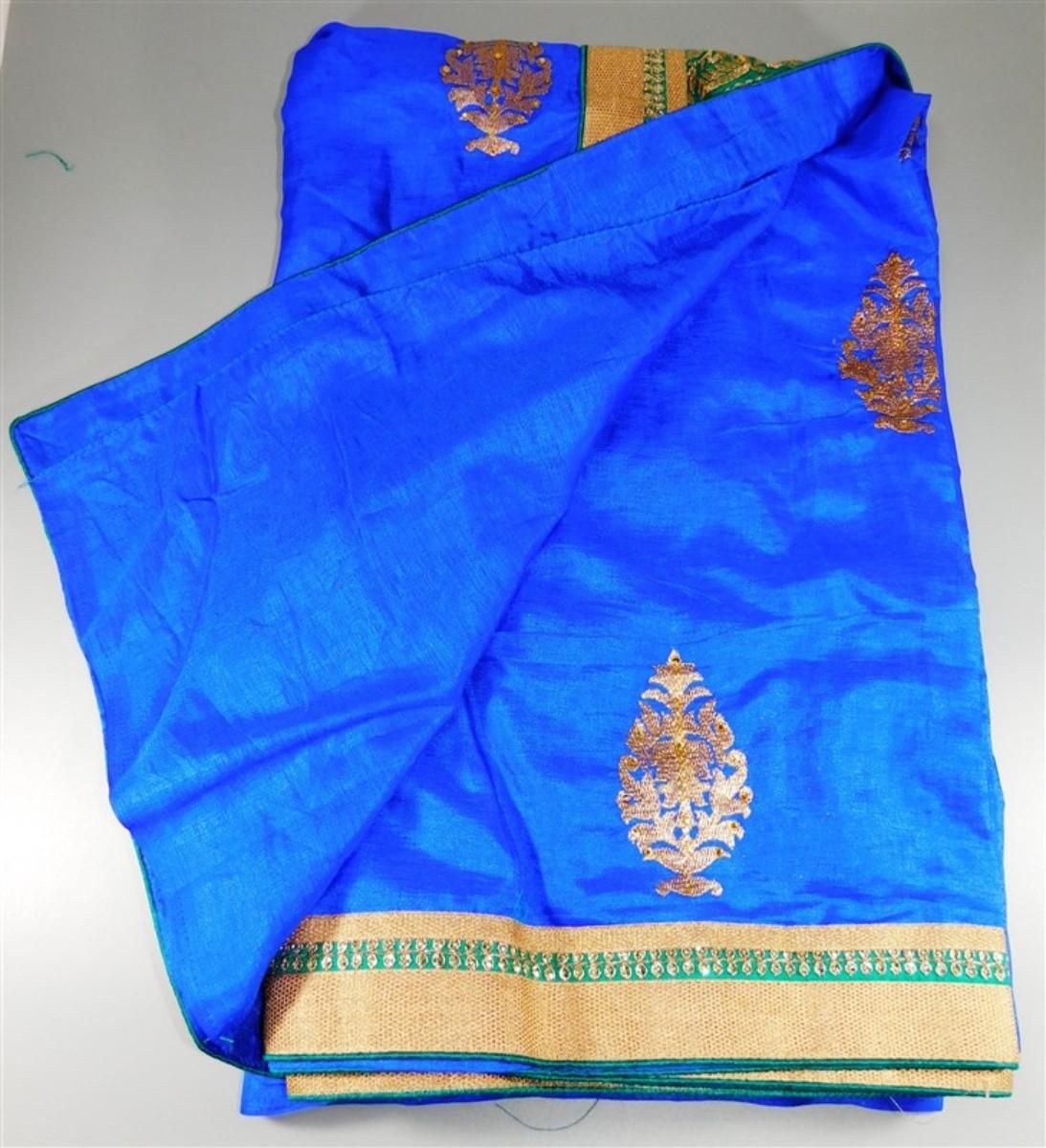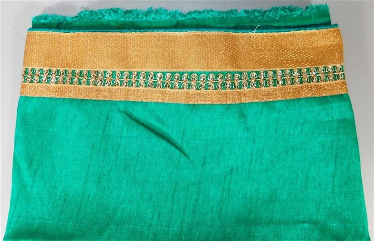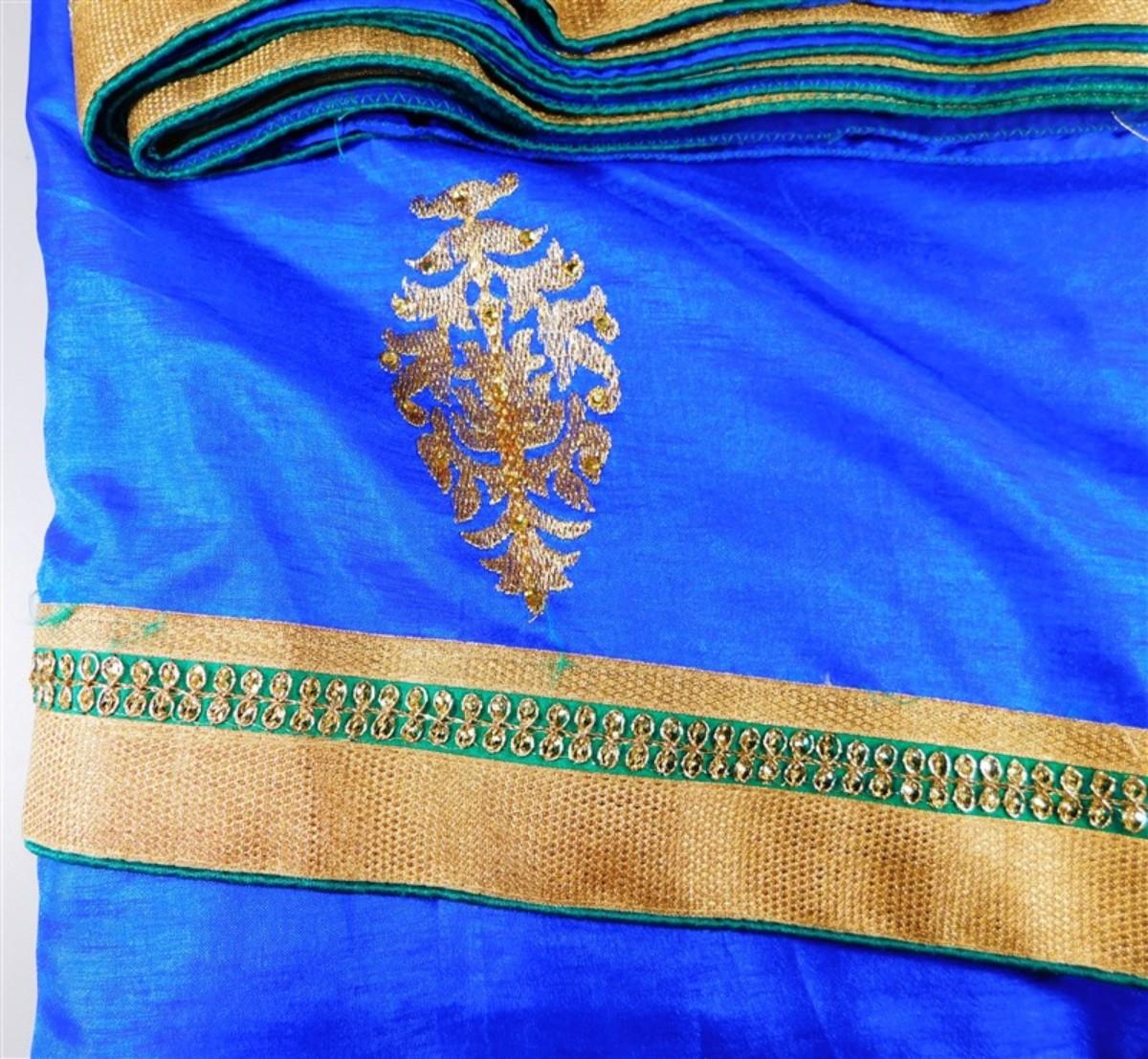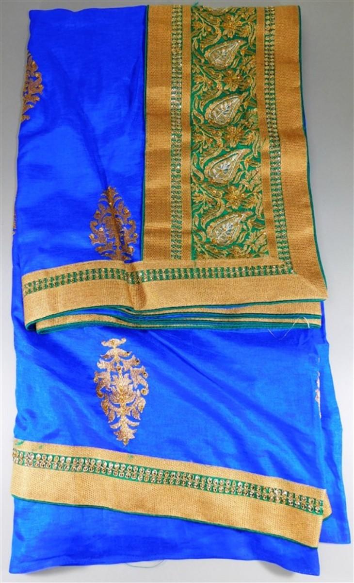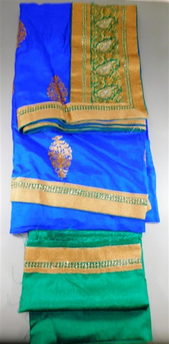 INDIAN SARI SAREE FABRIC GREEN AND BLUE WITH GOLD ACCENTS