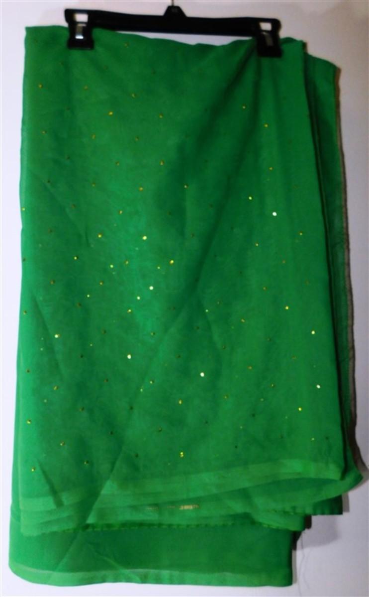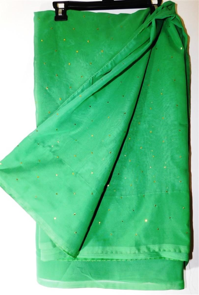 INDIAN SARI SAREE FABRIC GREEN WITH GOLD DOTS