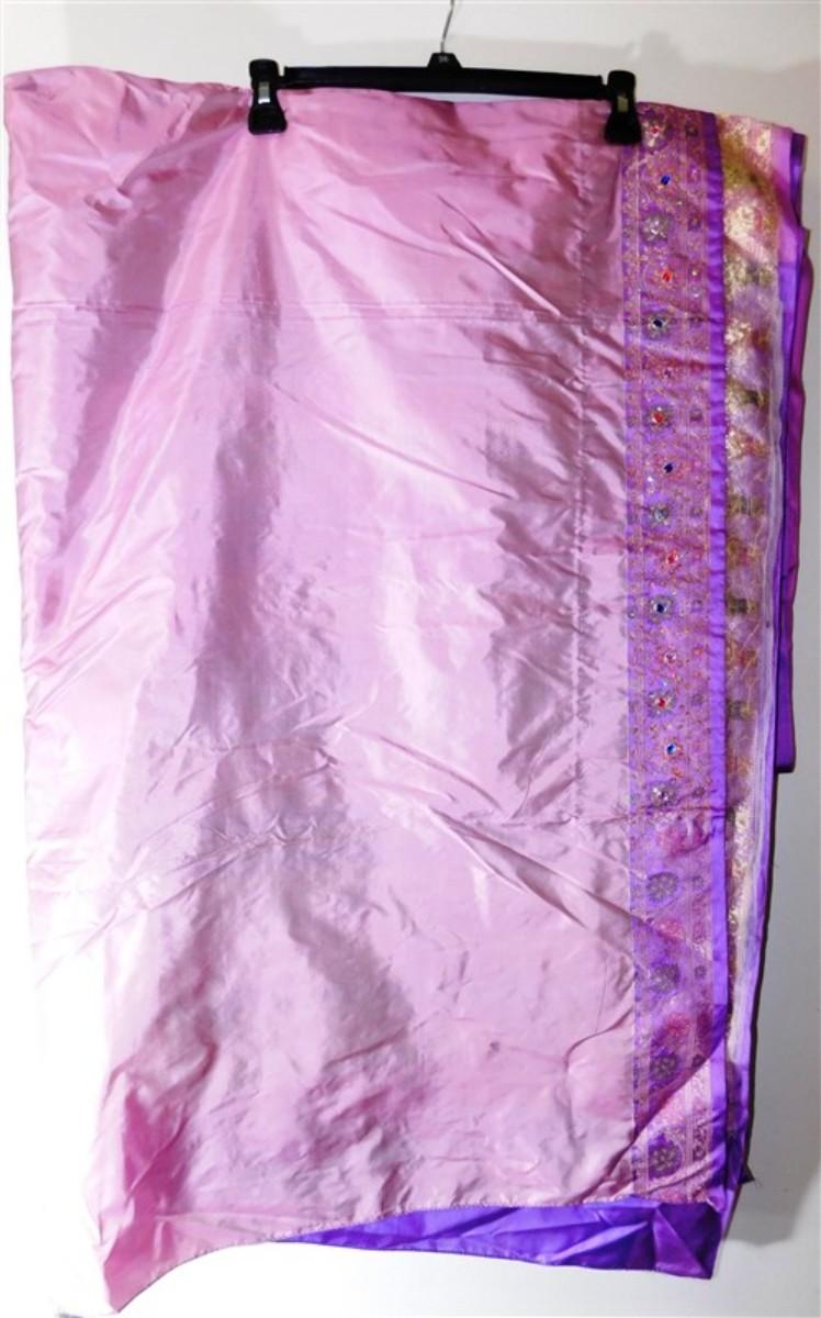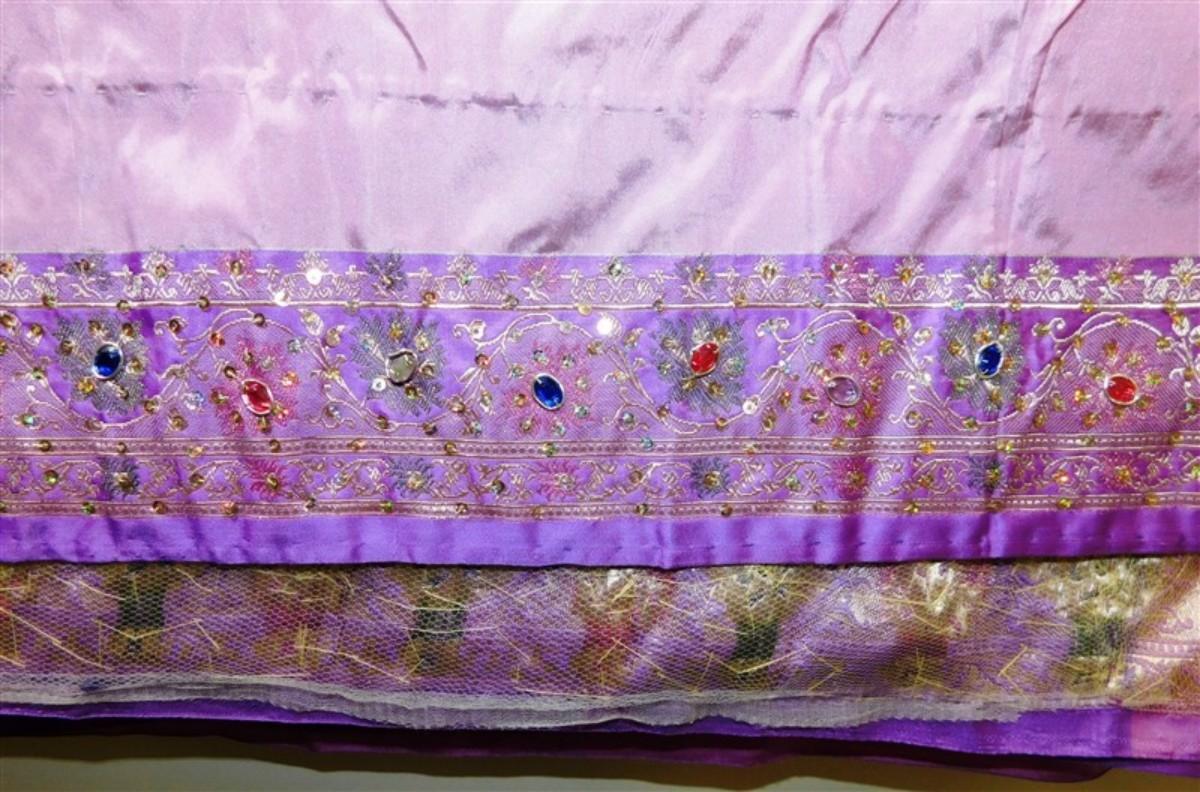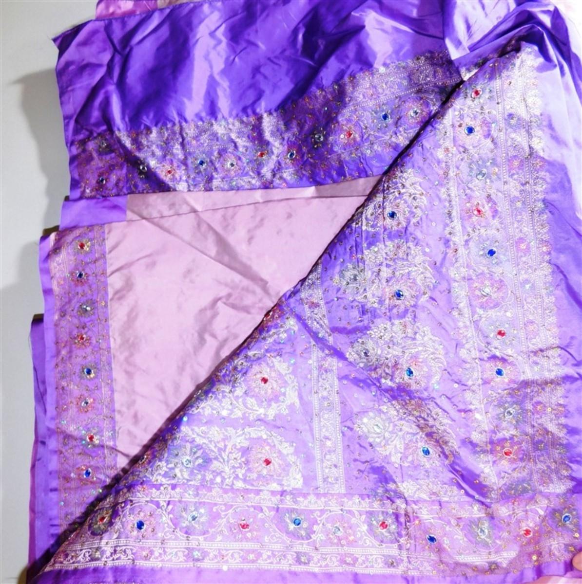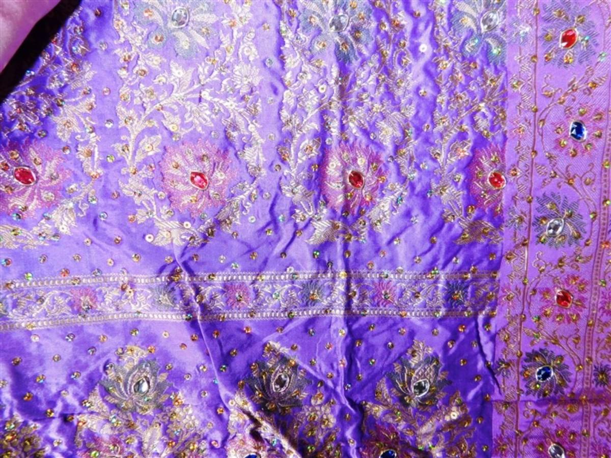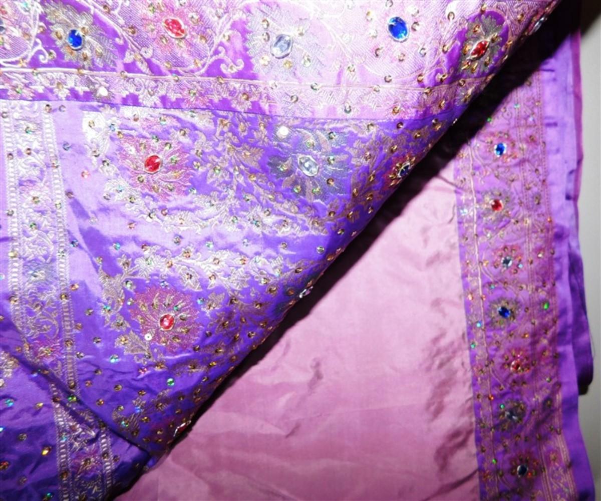INDIAN SARI SAREE FABRIC LAVENDER AND PURPLE WITH SEWN ON JEWELS