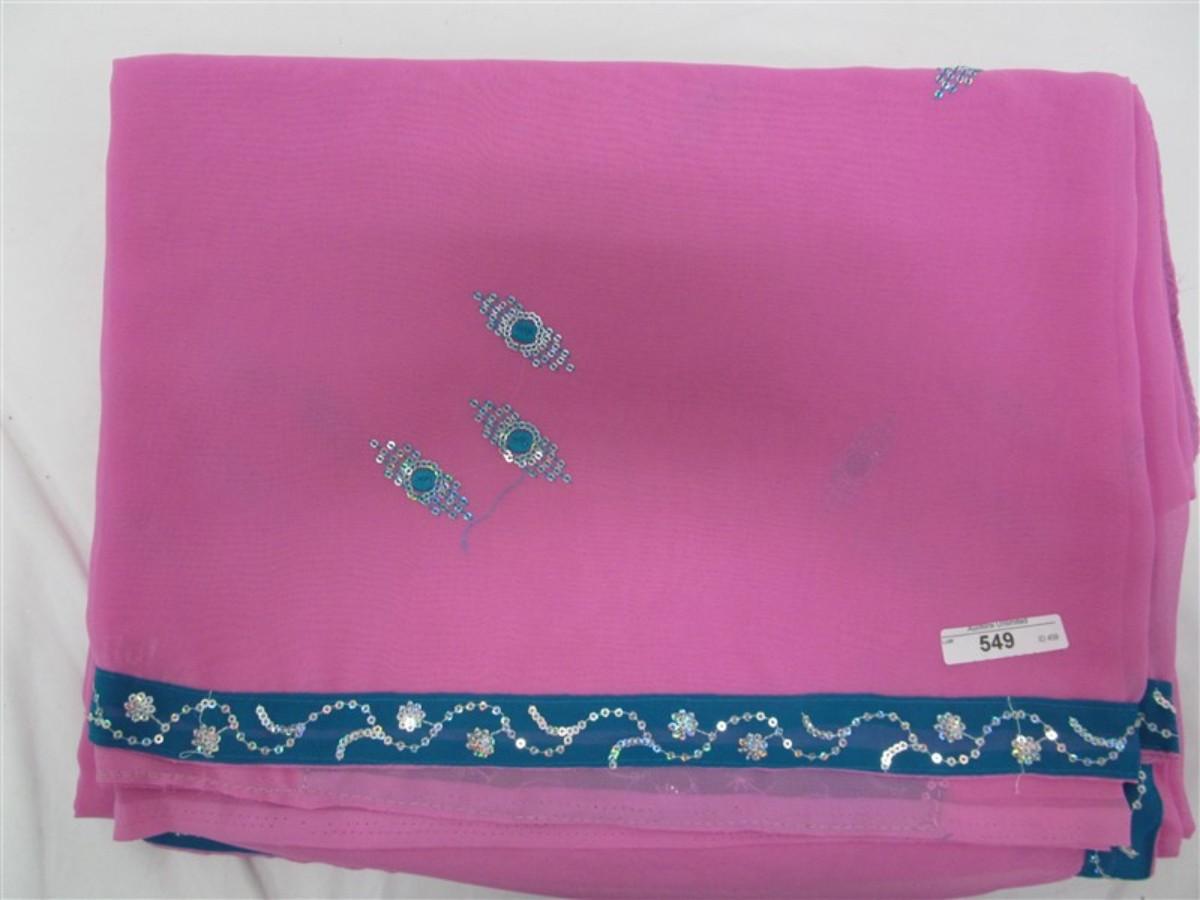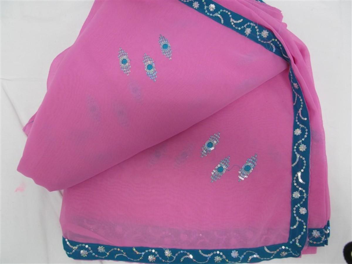 INDIAN SARI SAREE FABRIC LIGHT PINK & TEAL WITH SEQUINS