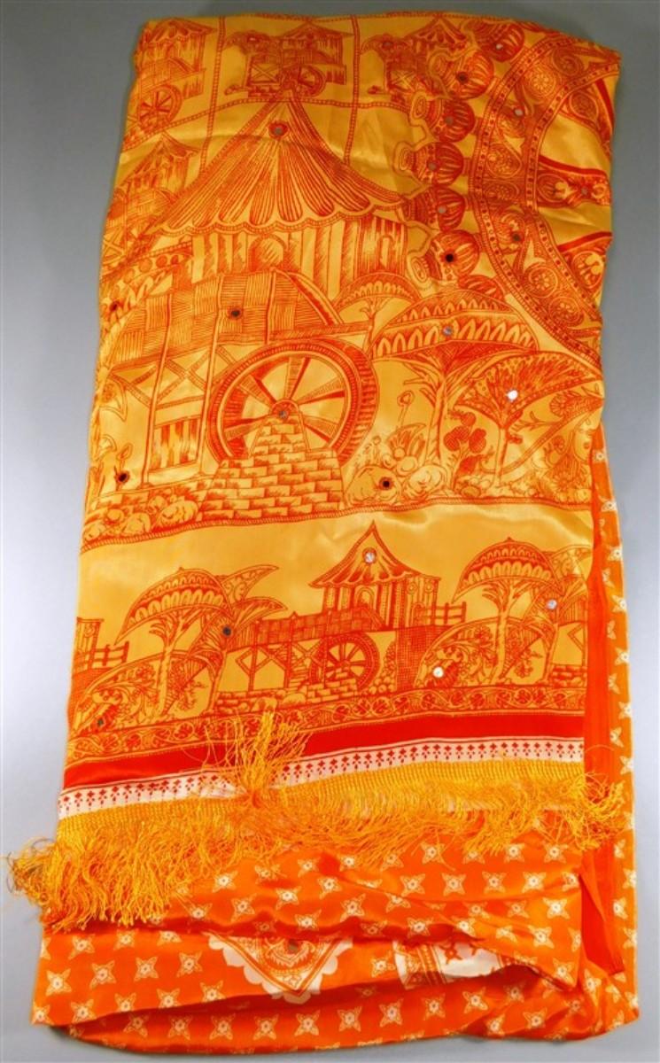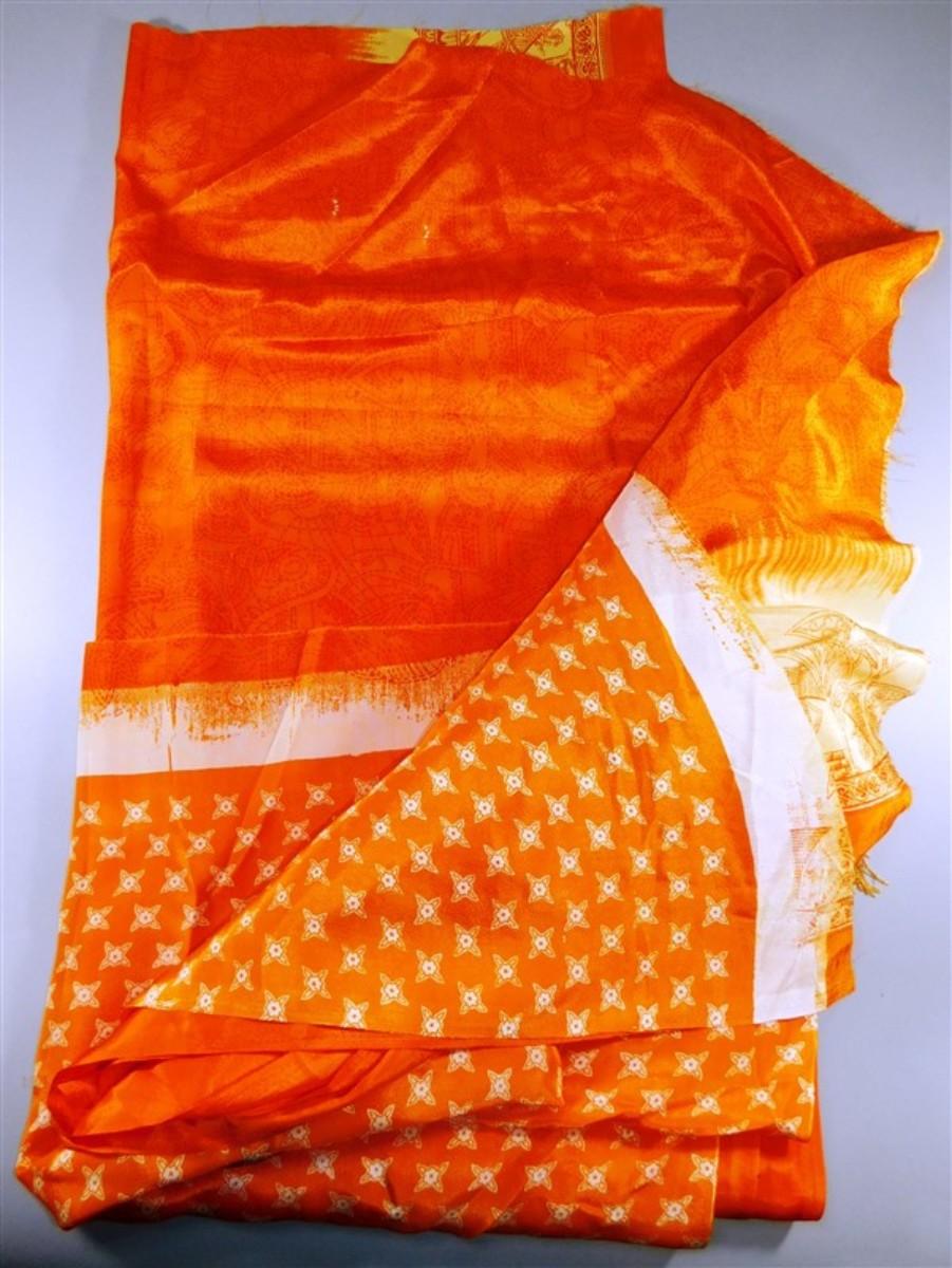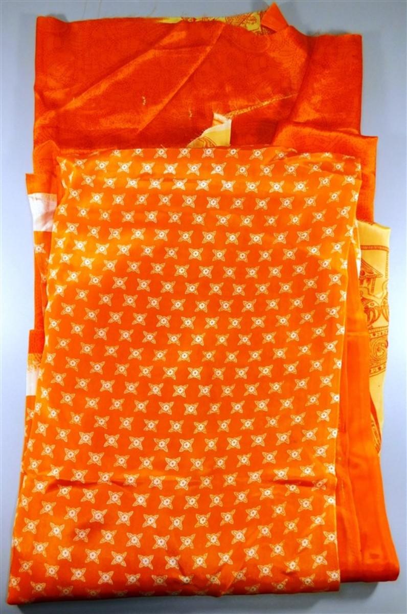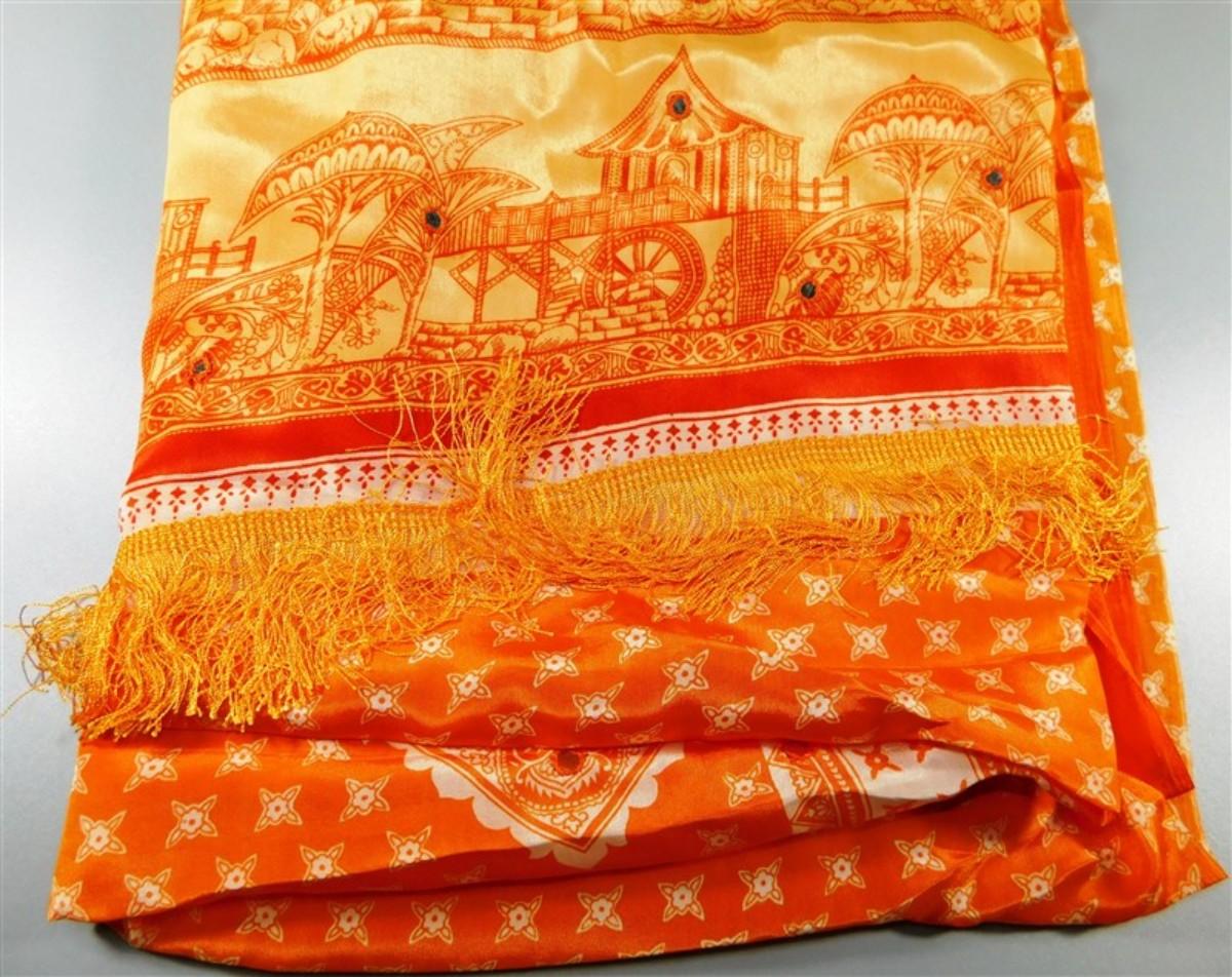 INDIAN SARI SAREE FABRIC LIGHT ORANGE AND DARK ORANGE WITH SMALL MIRRORS