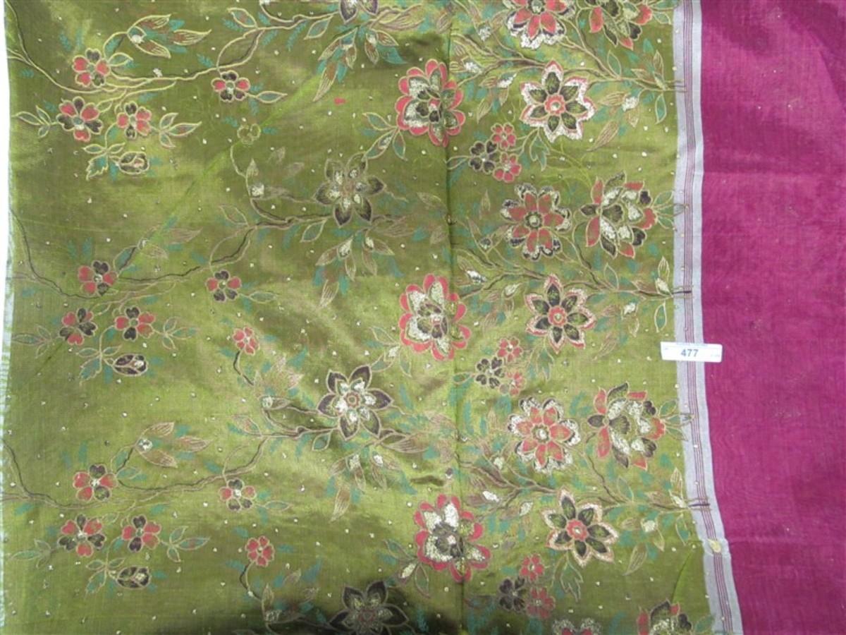 INDIAN SARI SAREE FABRIC MAROON & OLIVE