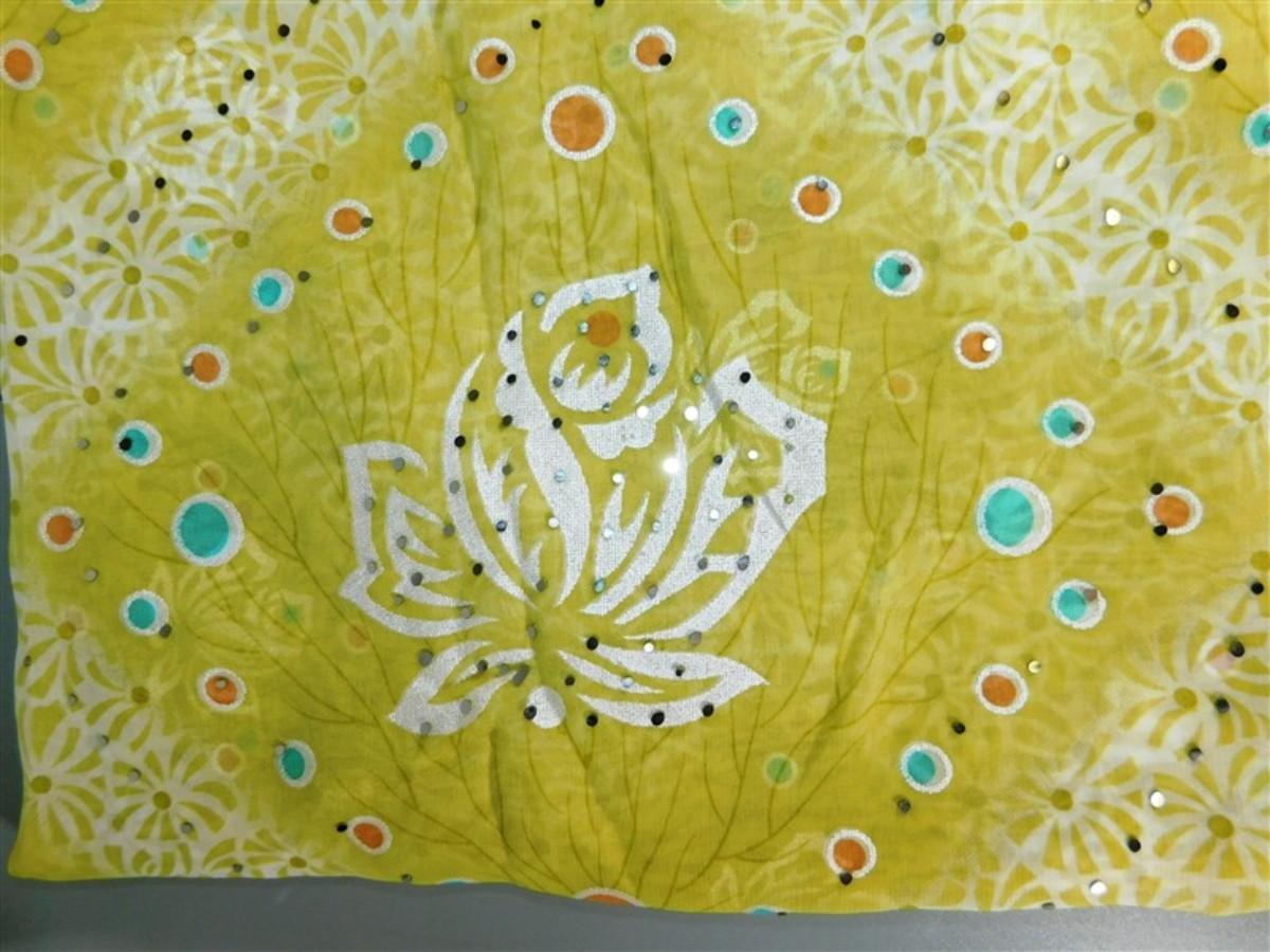 INDIAN SARI SAREE FABRIC NEON GREEN AND BLUE WITH MIRRORS
