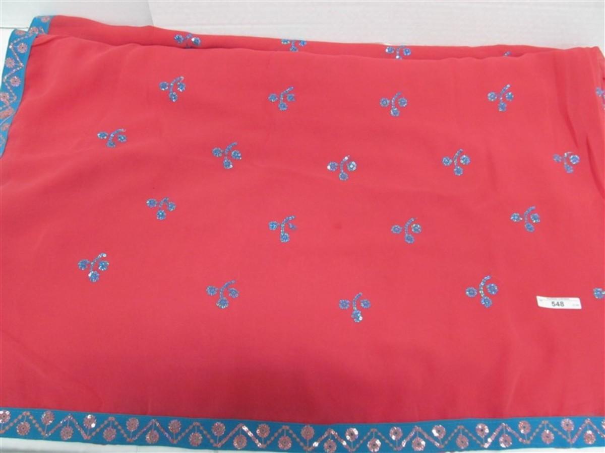INDIAN SARI SAREE FABRIC PINK & TEAL WITH SEQUINS
