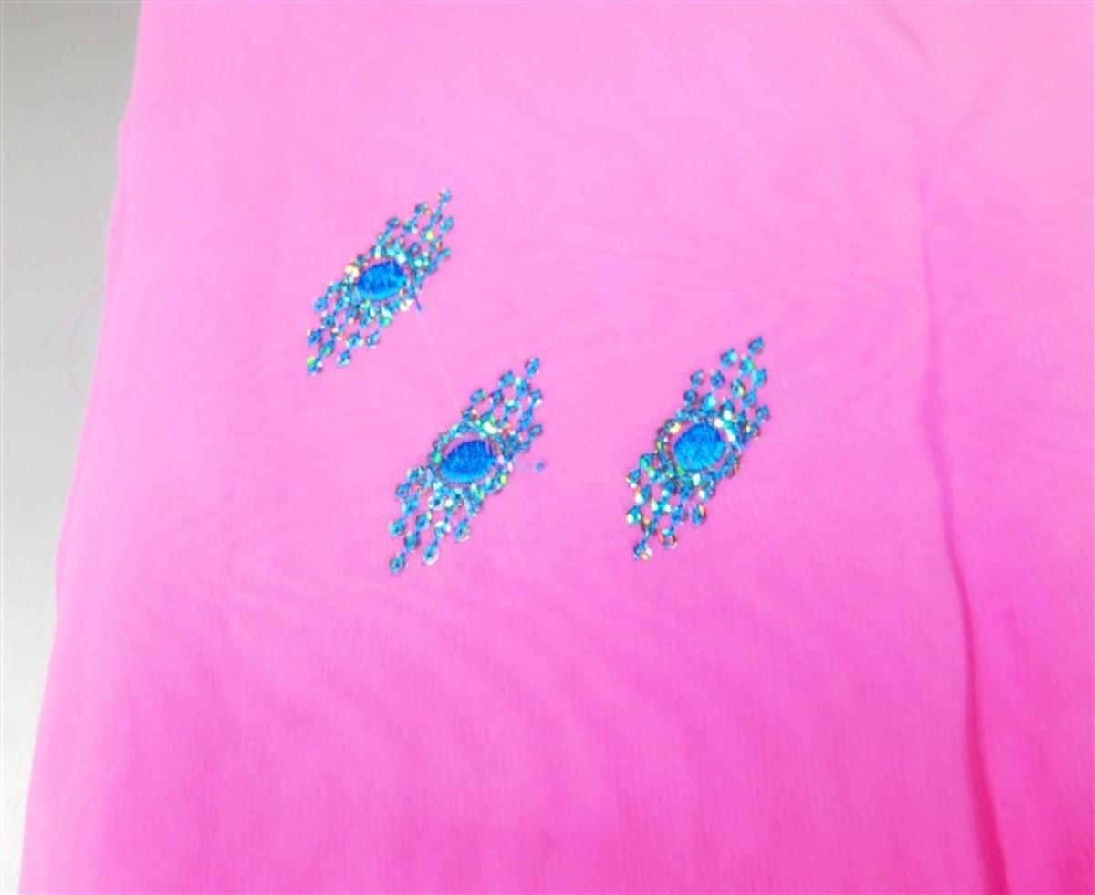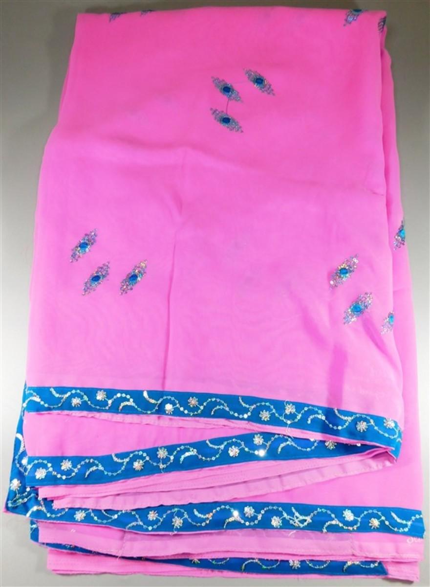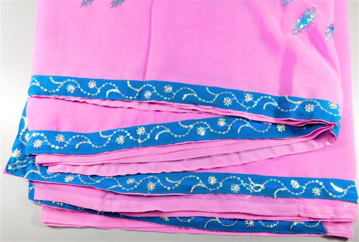 INDIAN SARI SAREE FABRIC PINK AND TEAL WITH SILVER SEQUINS
