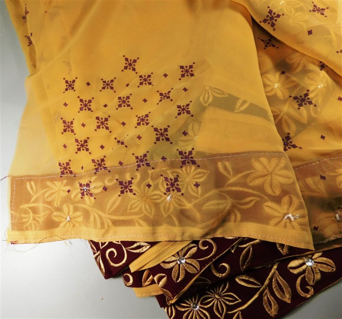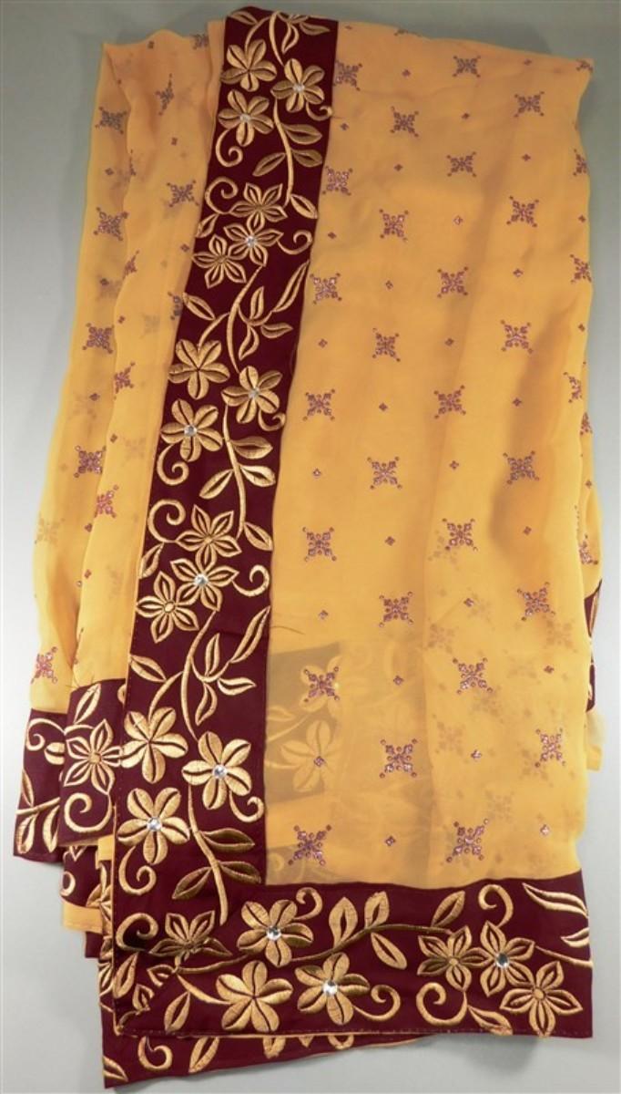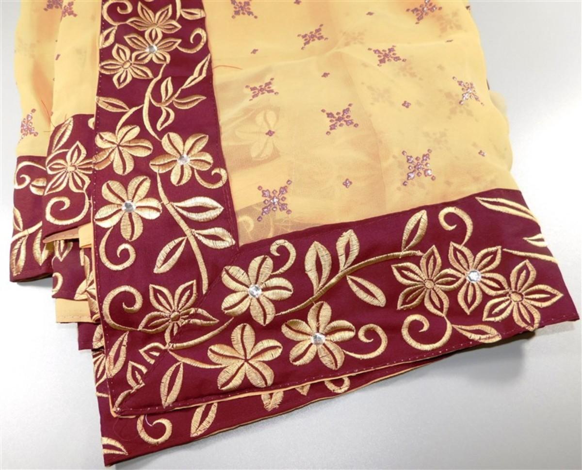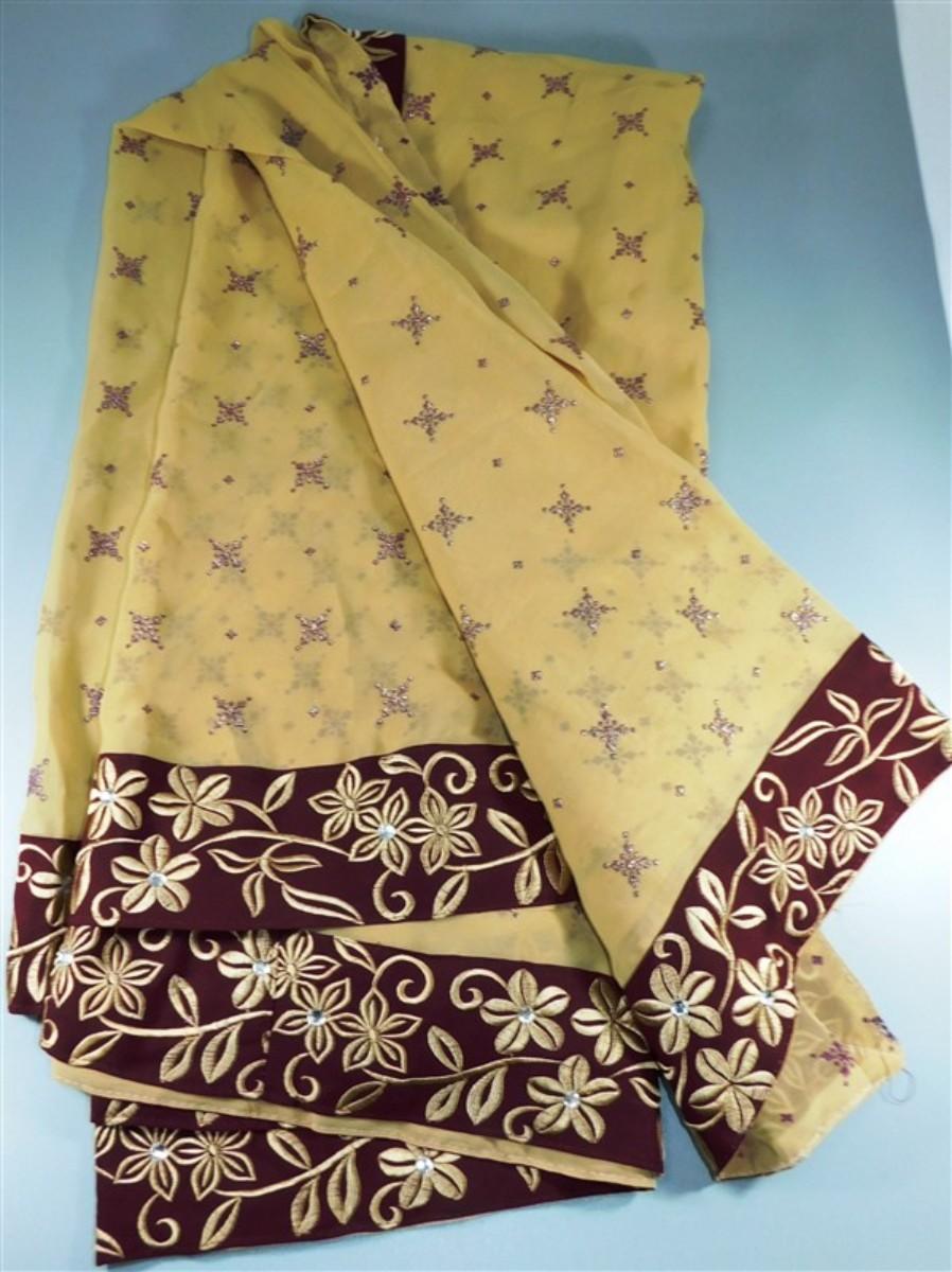 INDIAN SARI SAREE FABRIC TAN AND MAROON