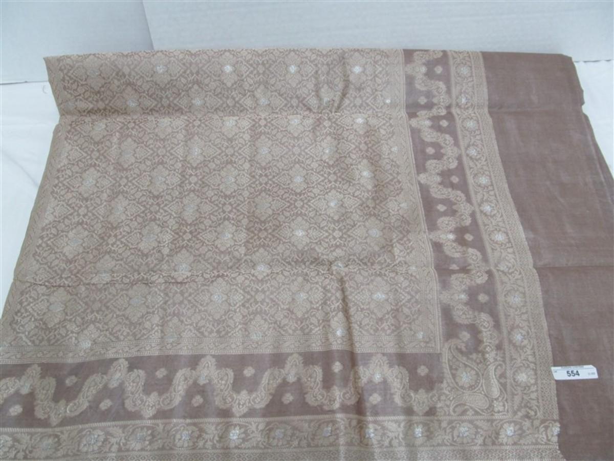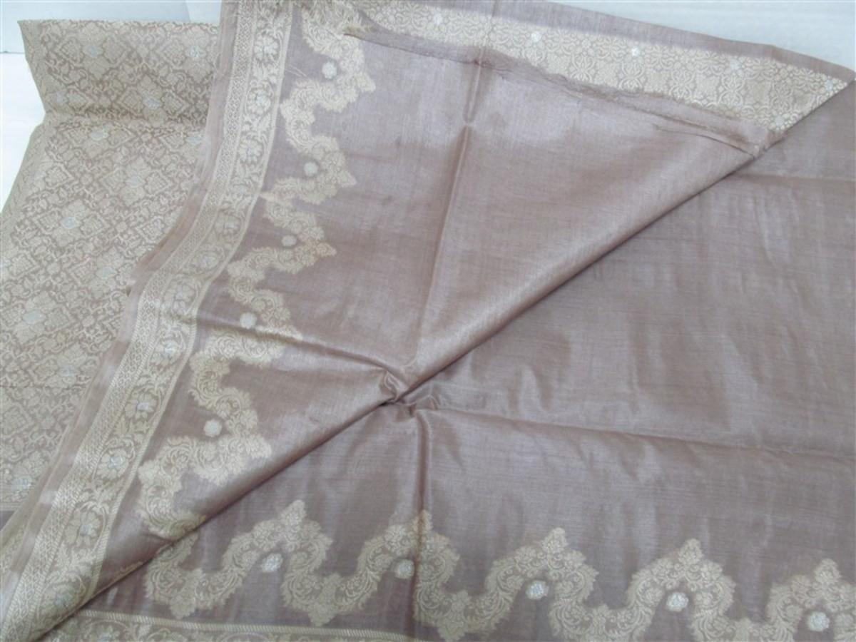 INDIAN SARI SAREE FABRIC TAUPE & BEIGE
