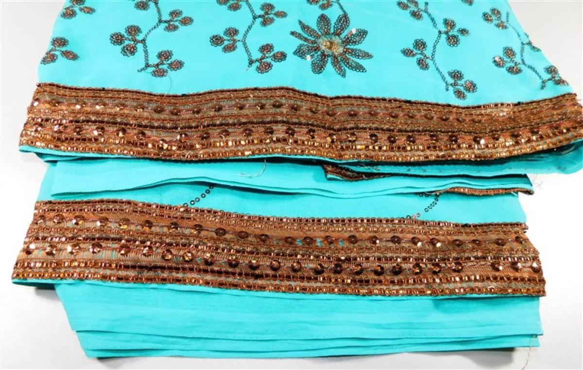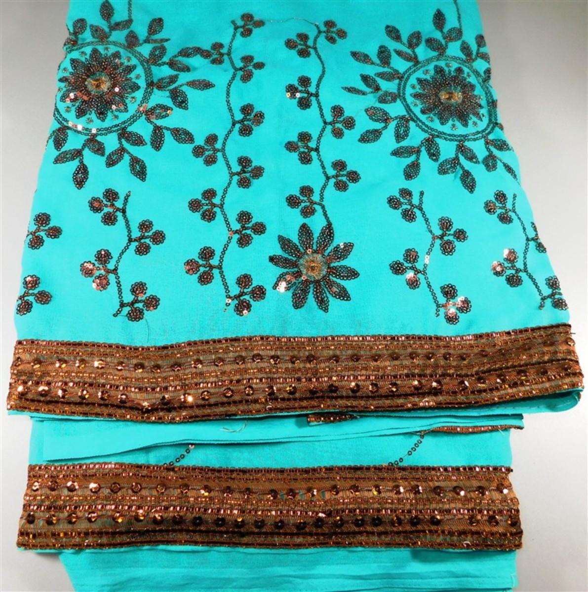 INDIAN SARI SAREE FABRIC TEAL AND BROWN SEQUINS
