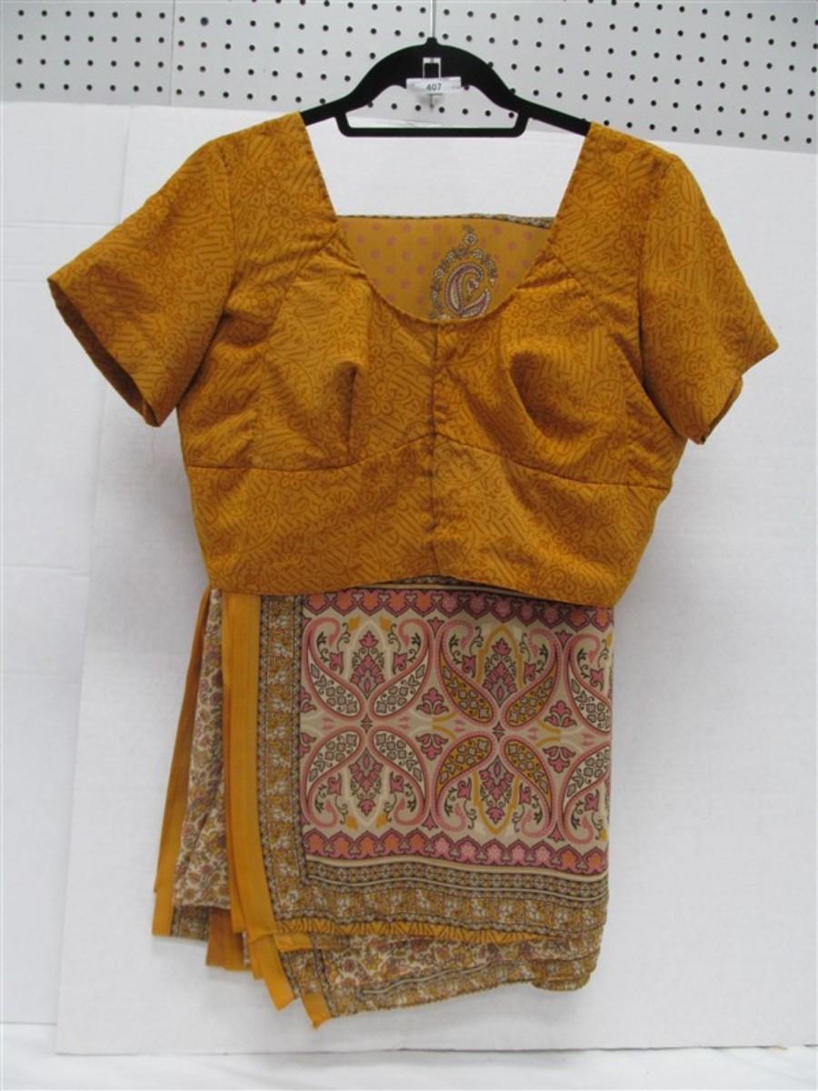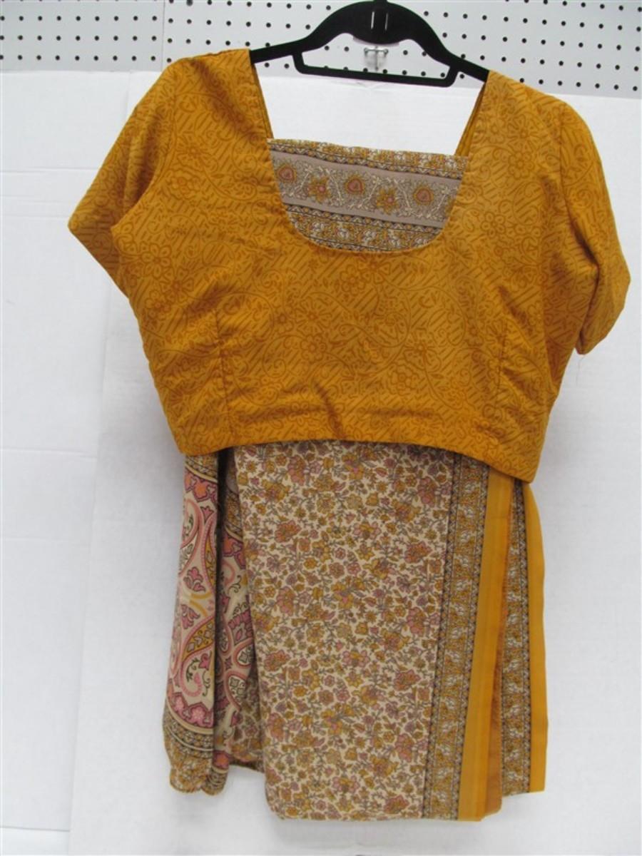 INDIAN SARI SAREE FLORAL WITH MUSTARD TRIM BONUS TOP