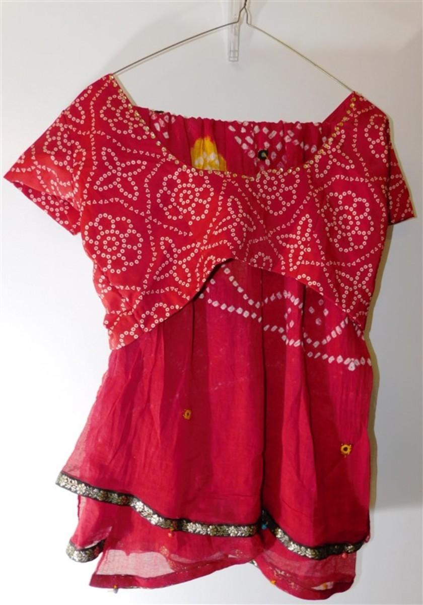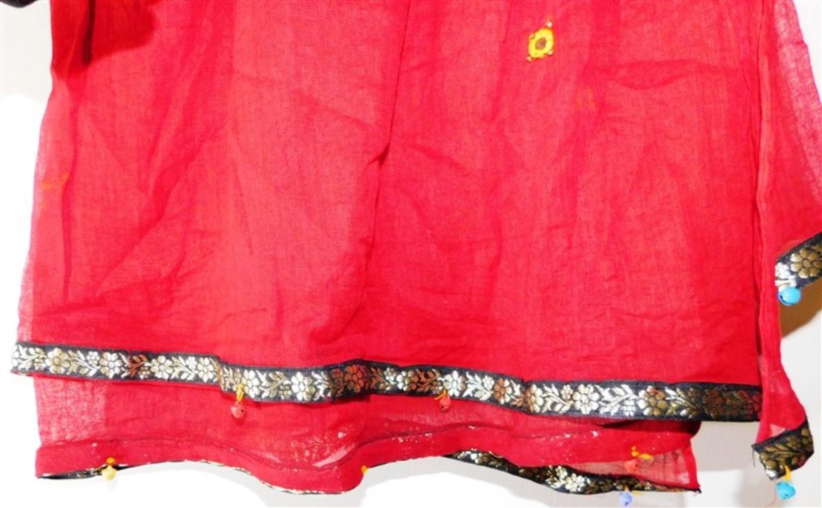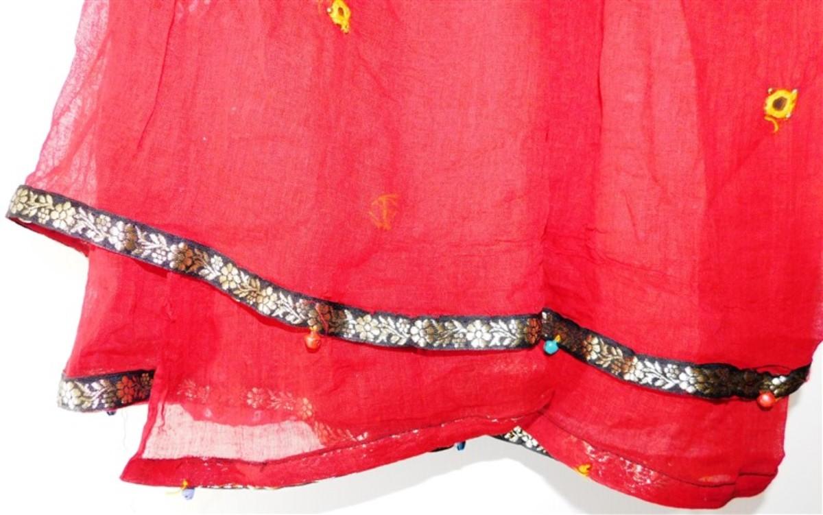 INDIAN SARI SAREE MAROON AND WHITE WITH BELLS BONUS TOP