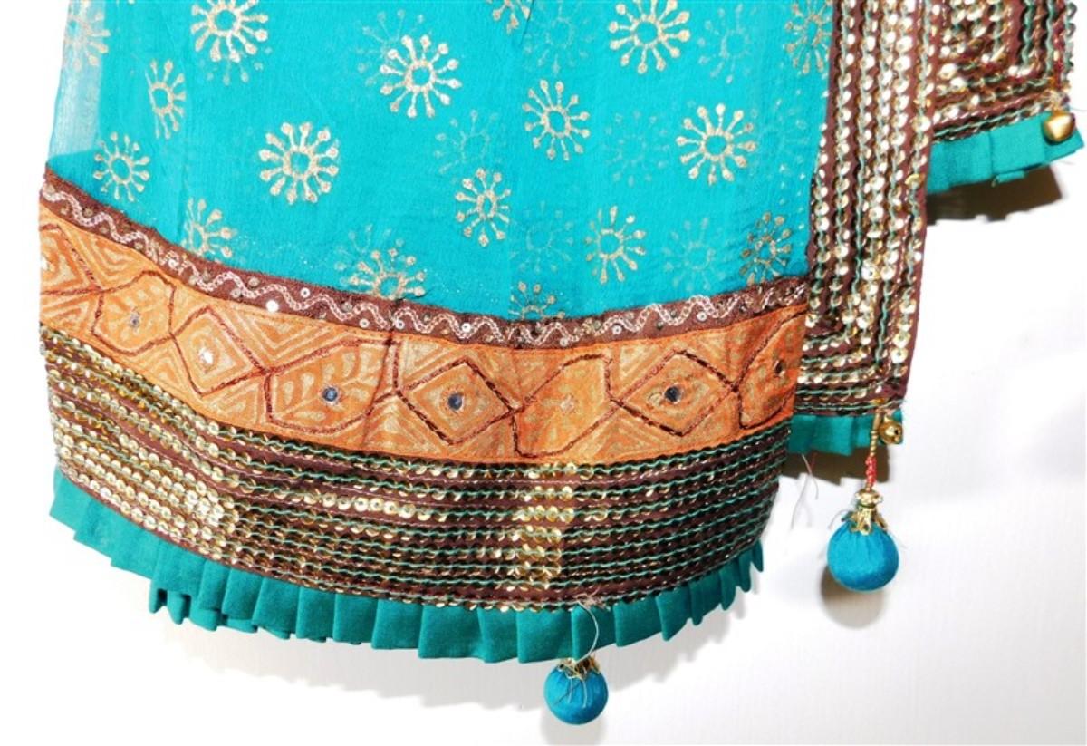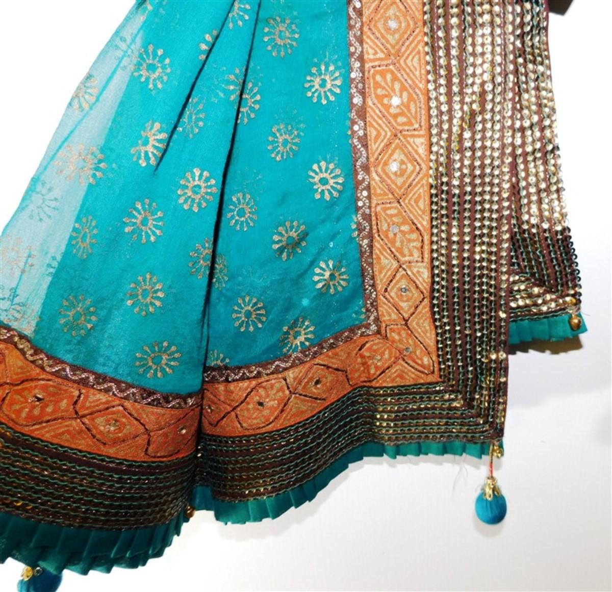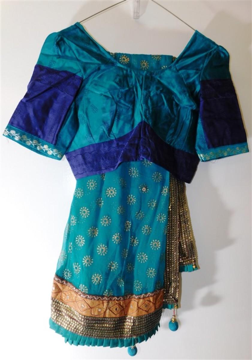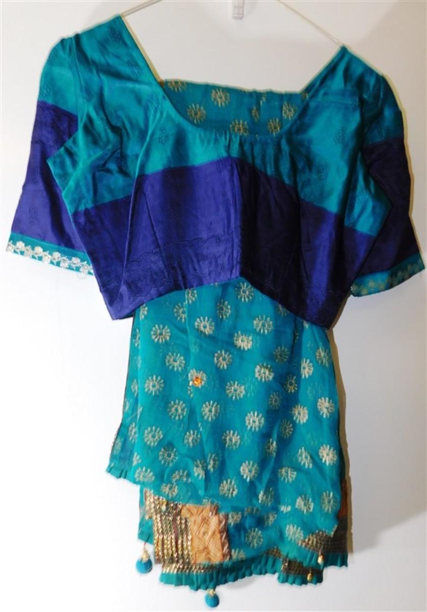INDIAN SARI SAREE NAVY AND TEAL WITH GOLD SEQUINS BONUS TOP