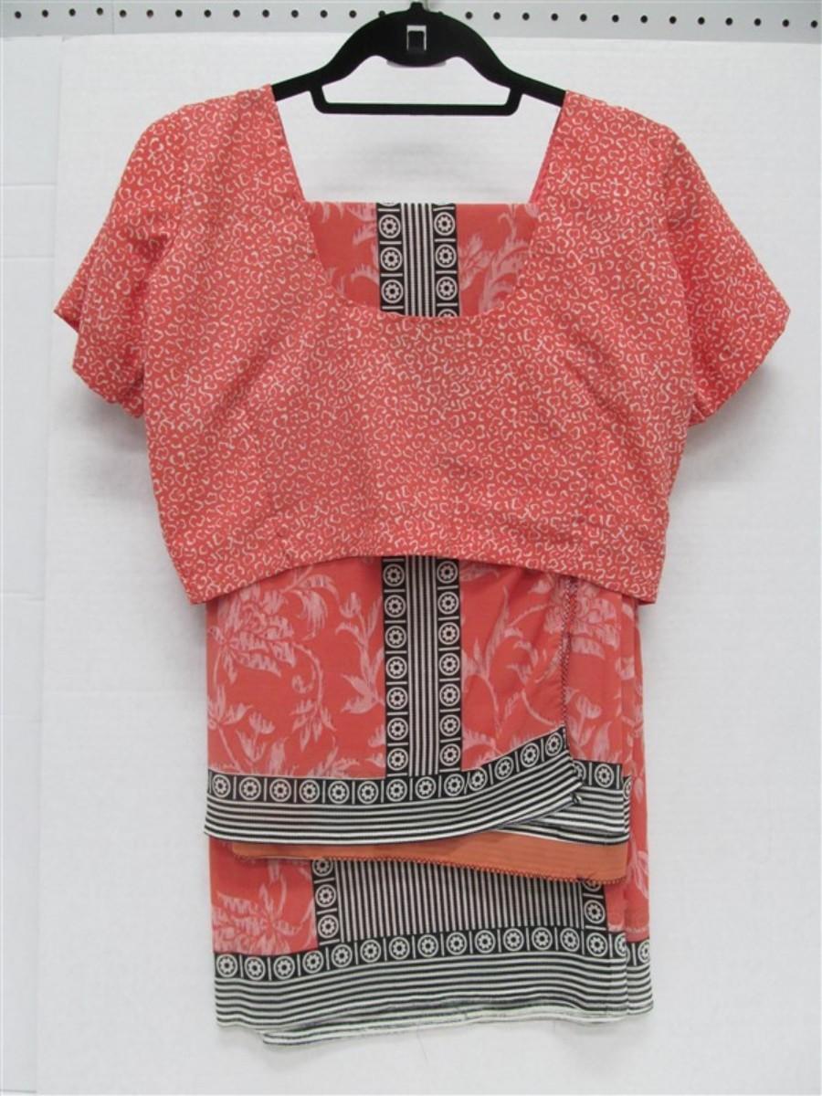 INDIAN SARI SAREE PINK FLORAL WITH BLACK & WHITE TRIM BONUS TOP