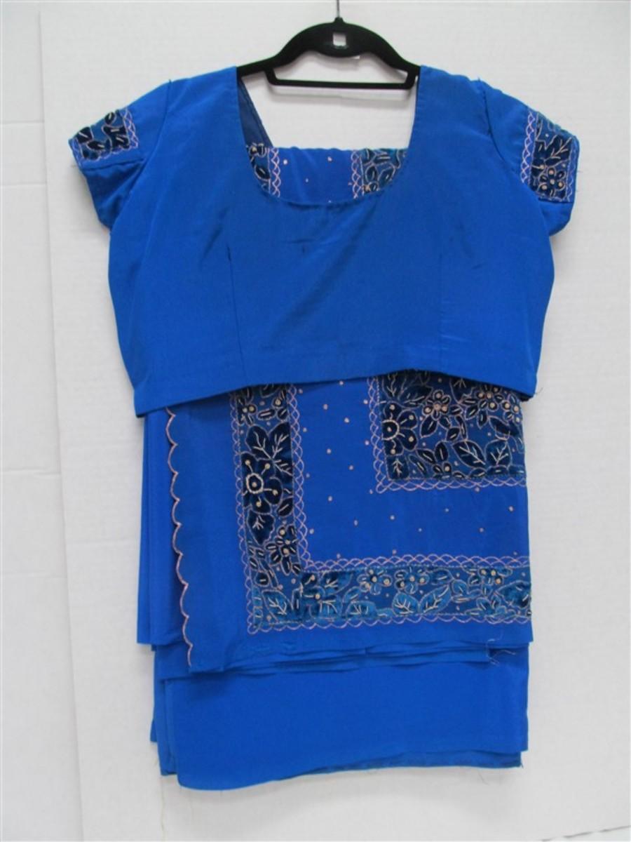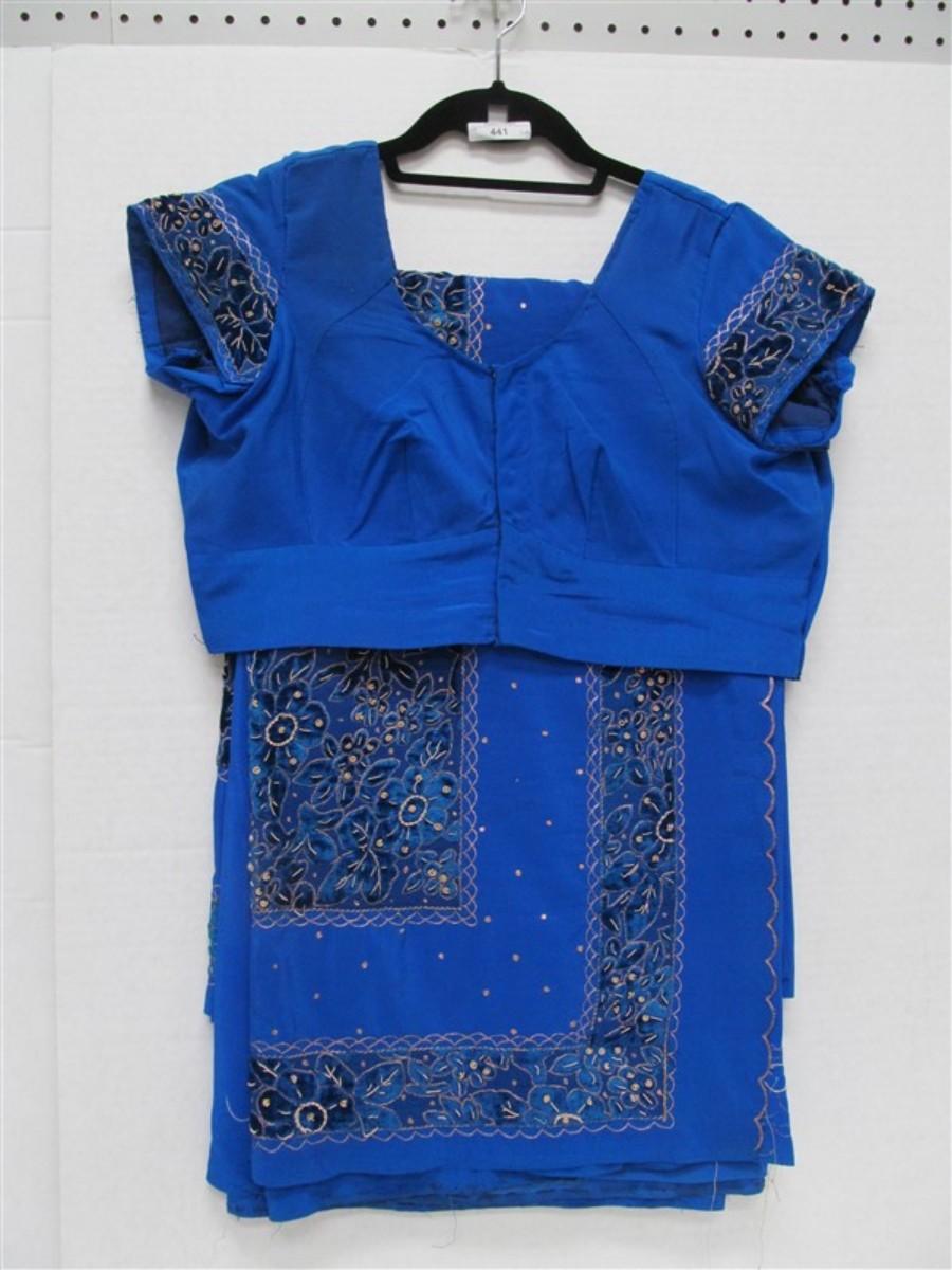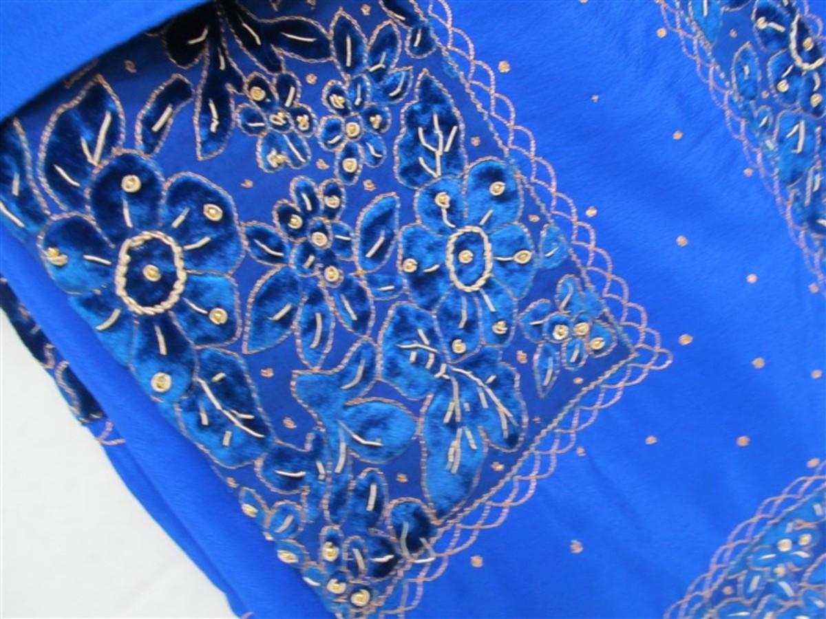 INDIAN SARI SAREE ROYAL BLUE WITH EMBROIDED AND BEADED FLORAL PATTERN BONUS TOP