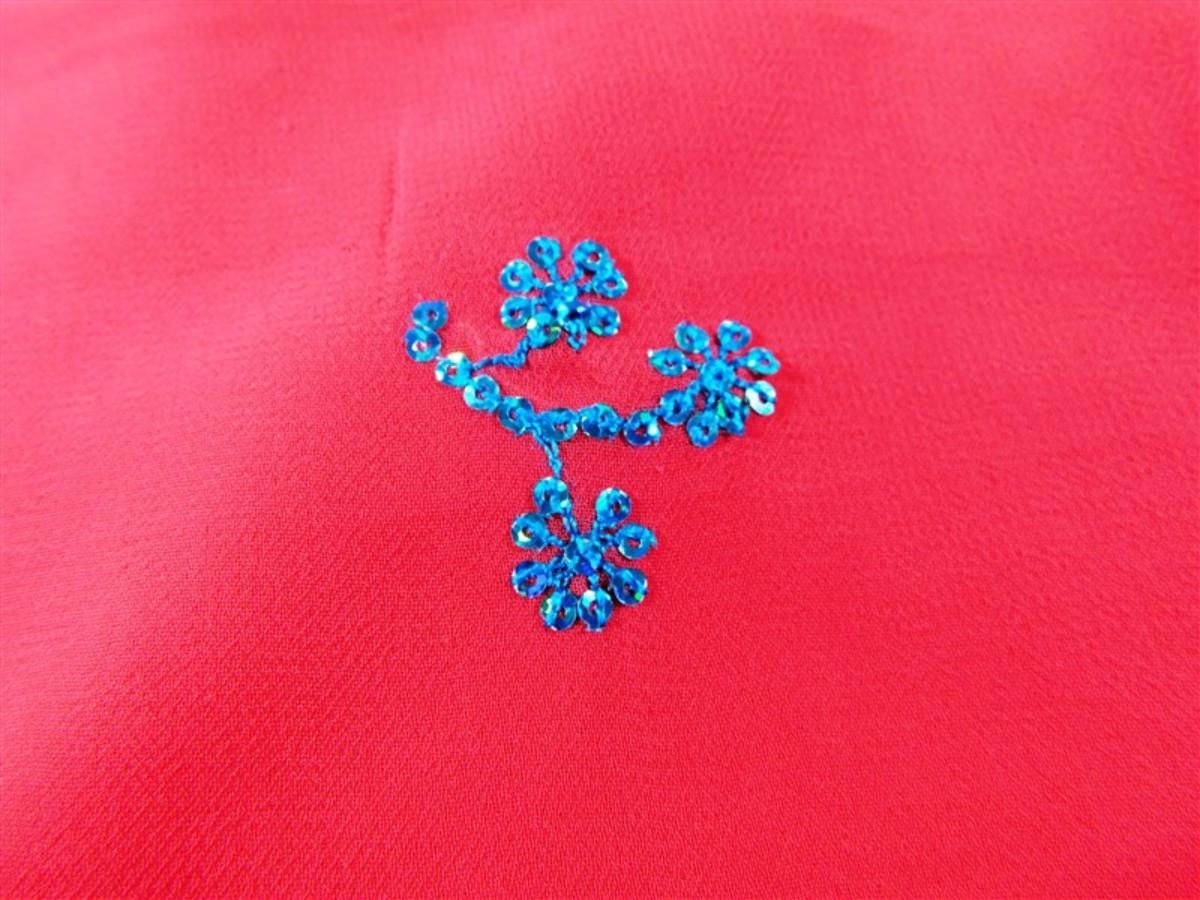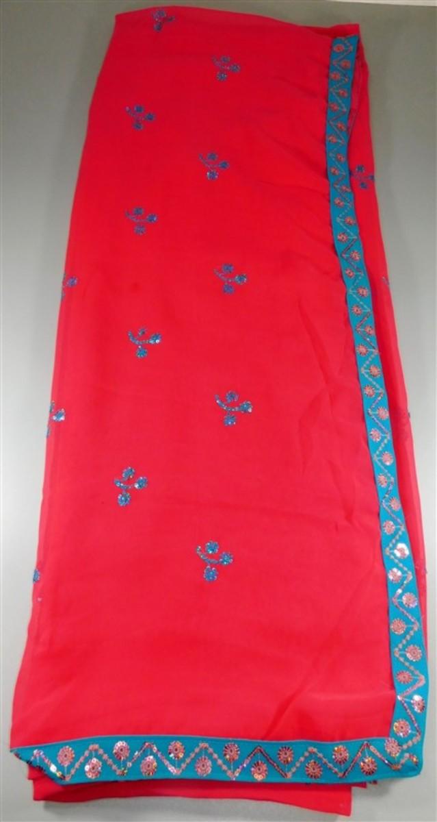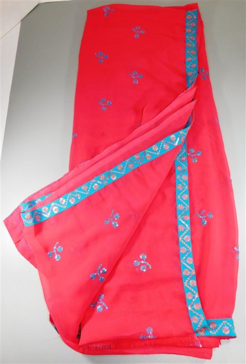INDIAN SARI SAREE SARI RED/BLUE SEQUIN & BEADED SARI ONLY