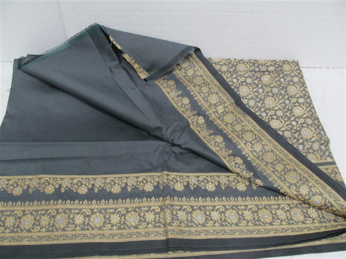 INDIAN SARI SAREE SLATE GRAY & GOLD