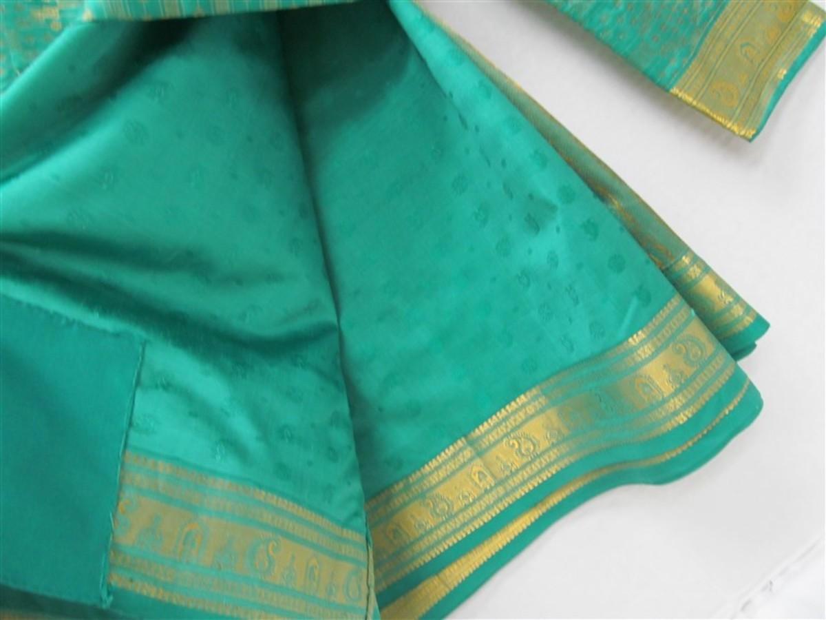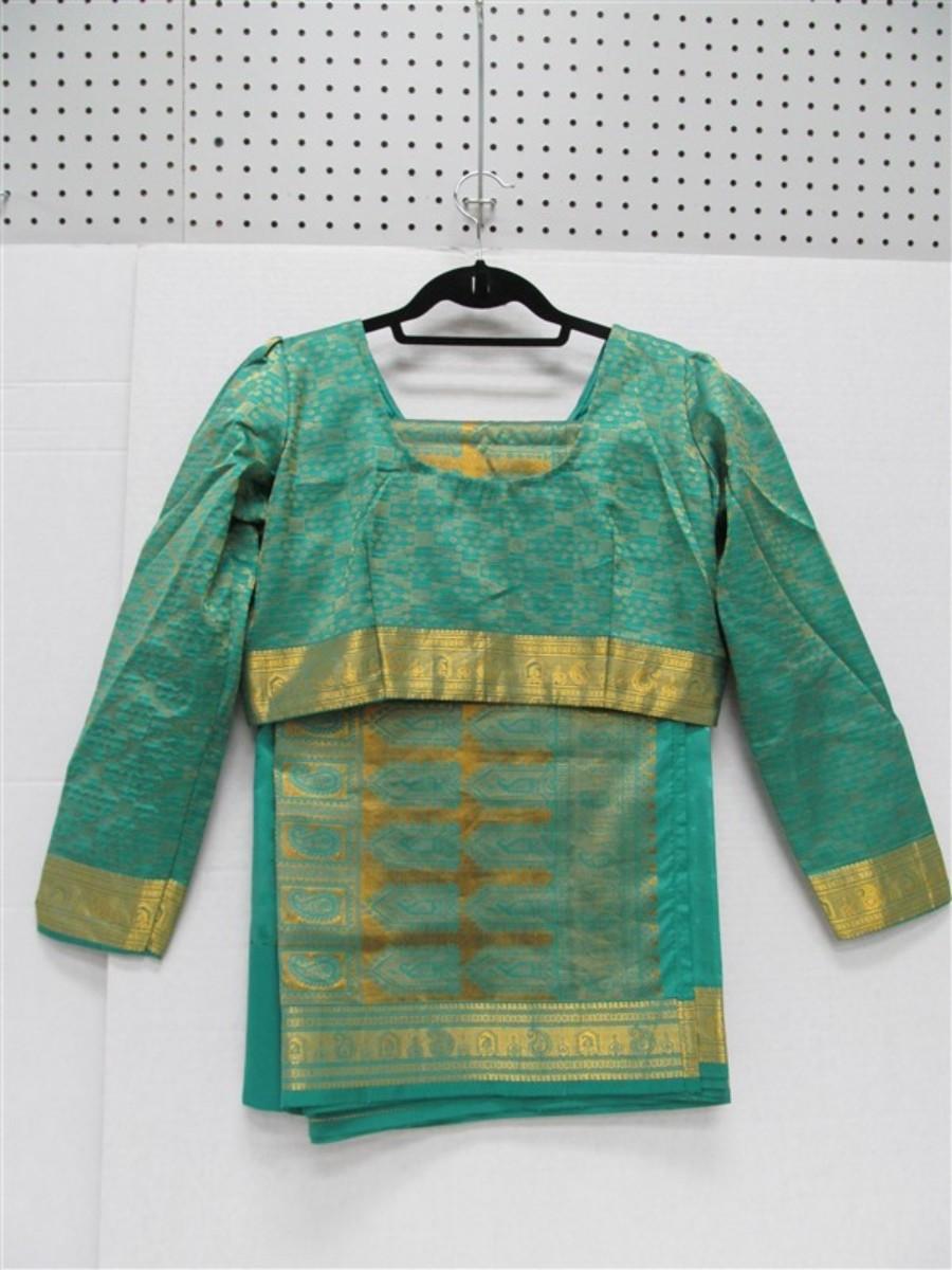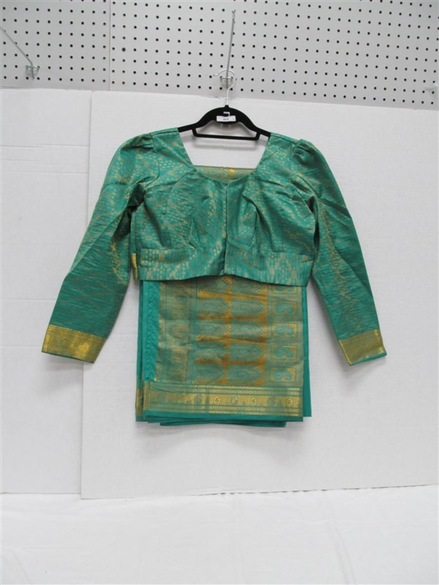 INDIAN SARI SAREE TEAL & GOLD WITH GOLD TRIM BONUS TOP