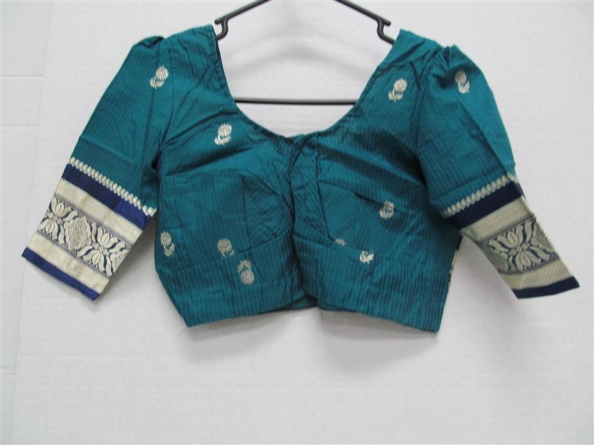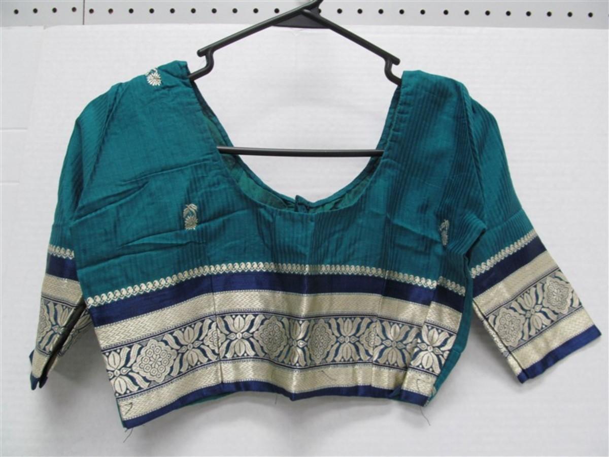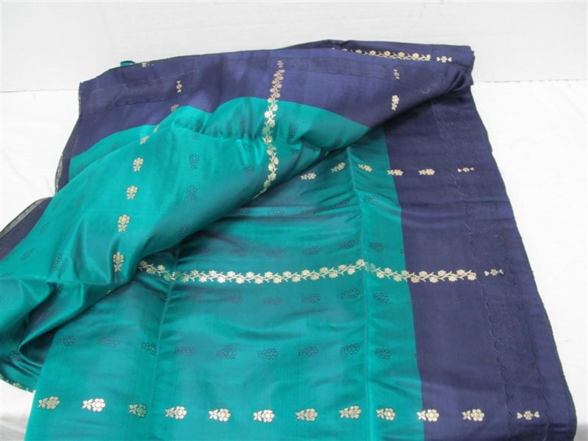 INDIAN SARI SAREE TURQUOISE & INDIGO BONUS w/2 TOPS