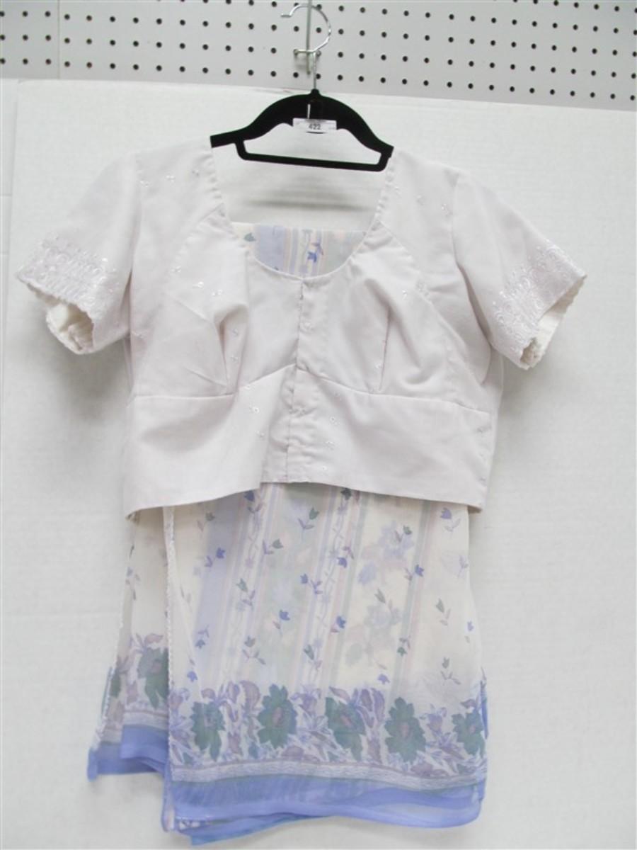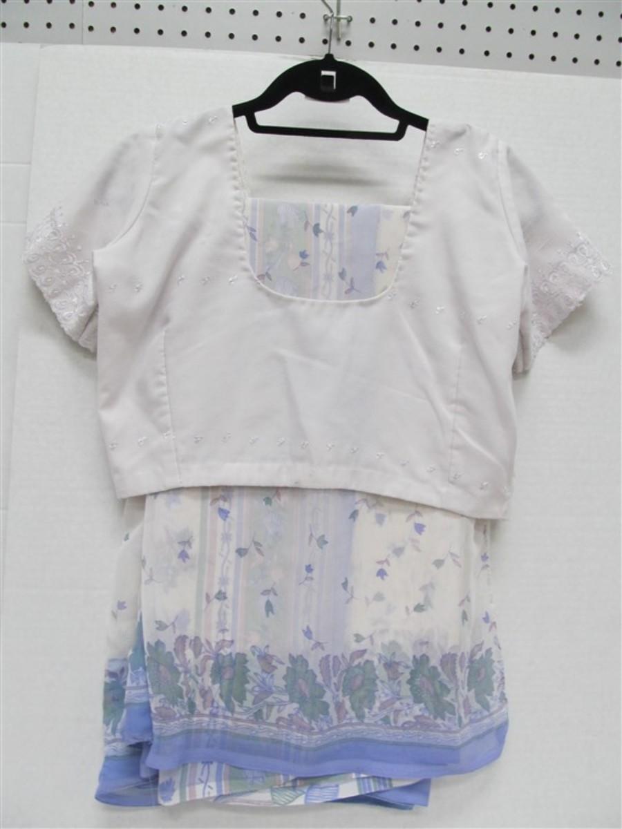 INDIAN SARI SAREE WHITE & LILAC WITH FLORAL PATTERN BONUS TOP