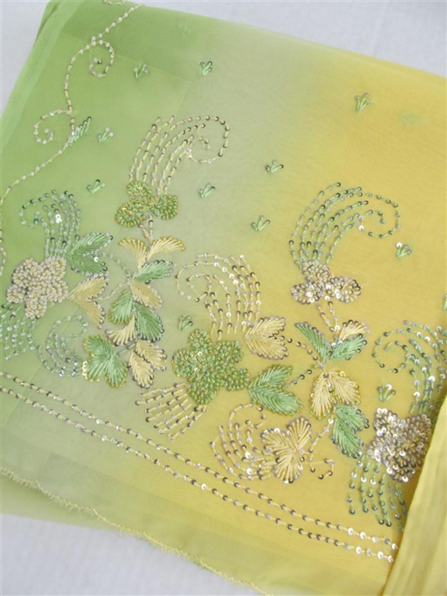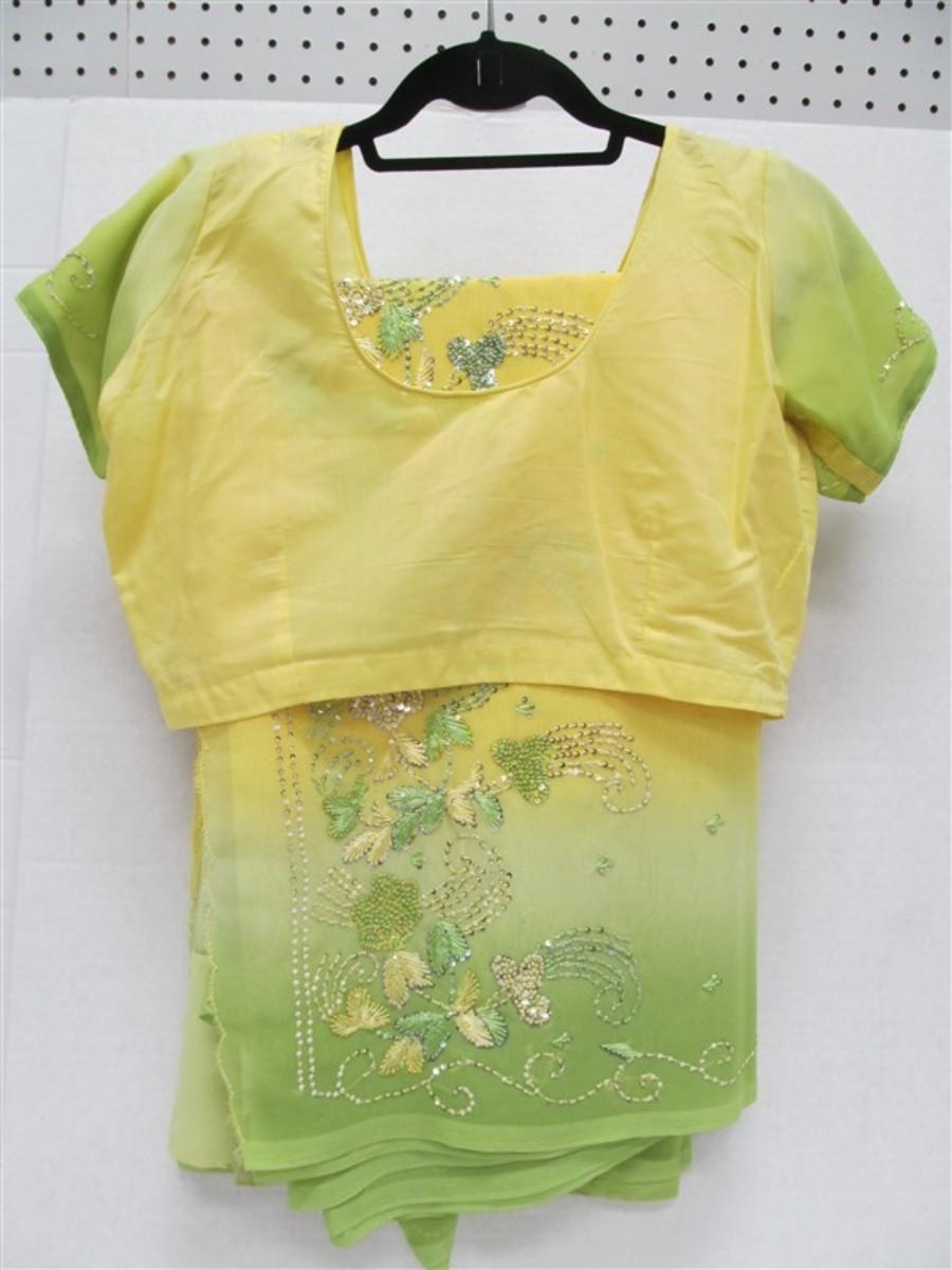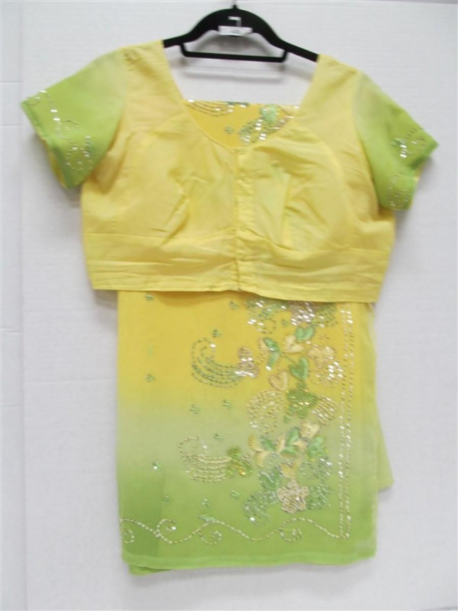 INDIAN SARI SAREE YELLOW & GREEN WITH SEQUINS BONUS TOP