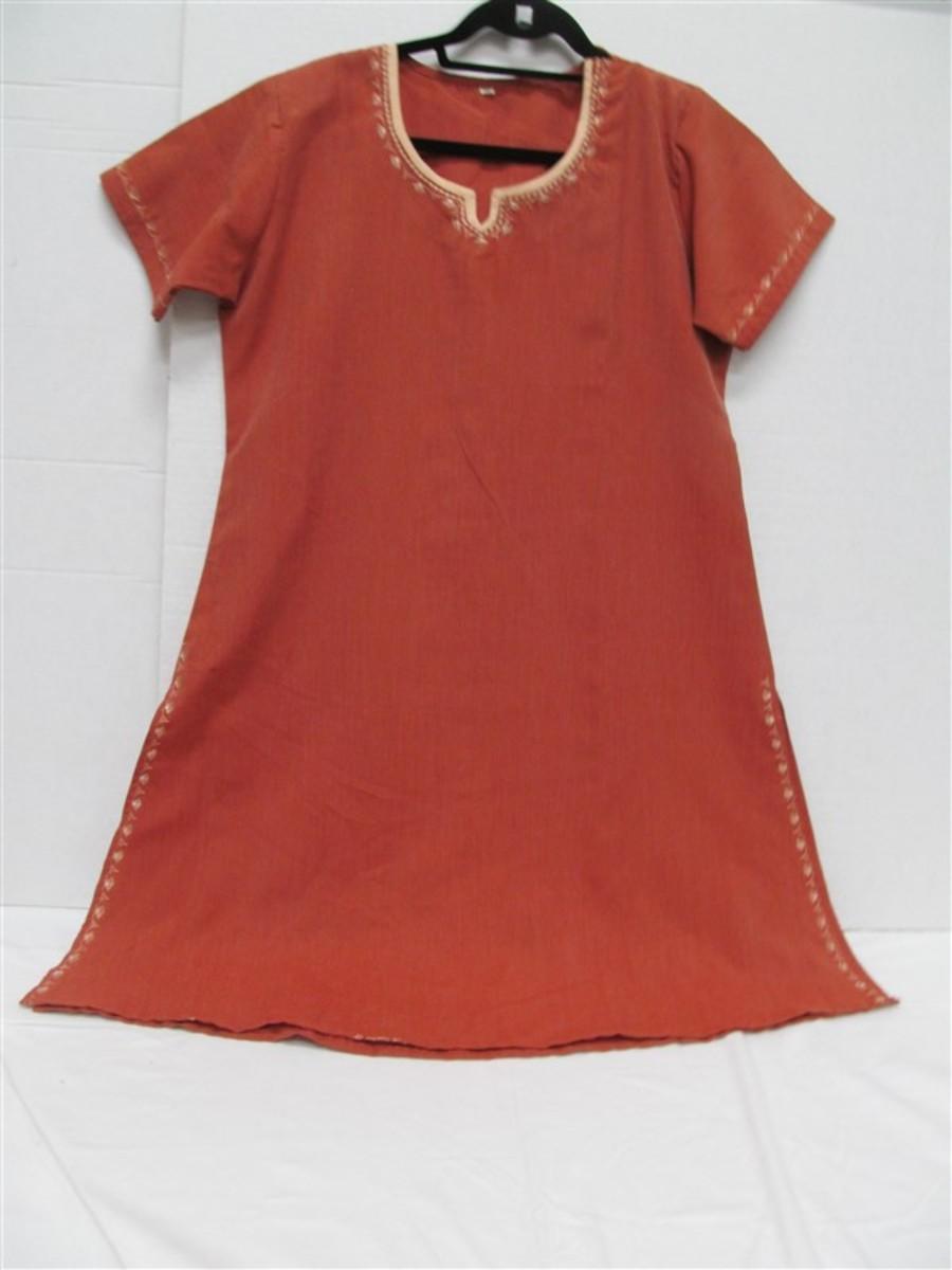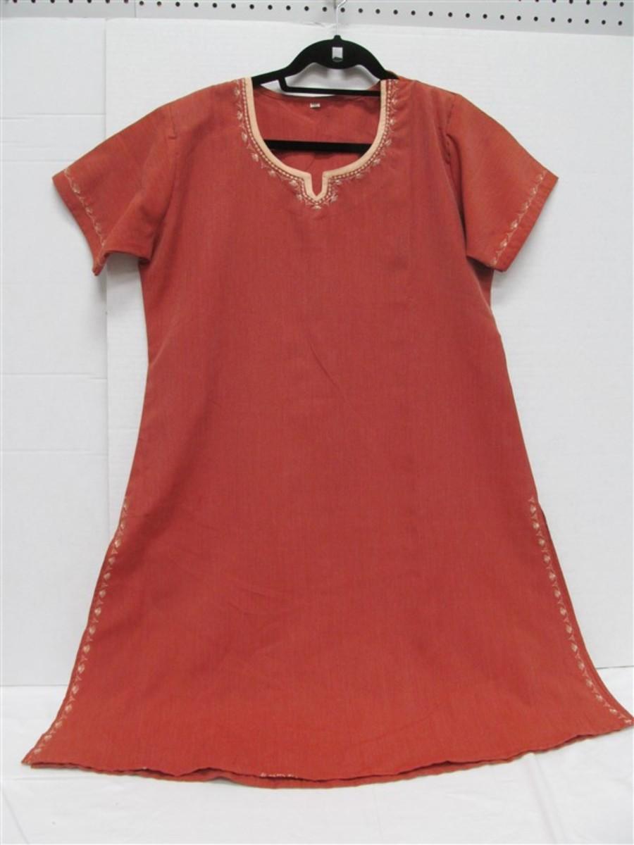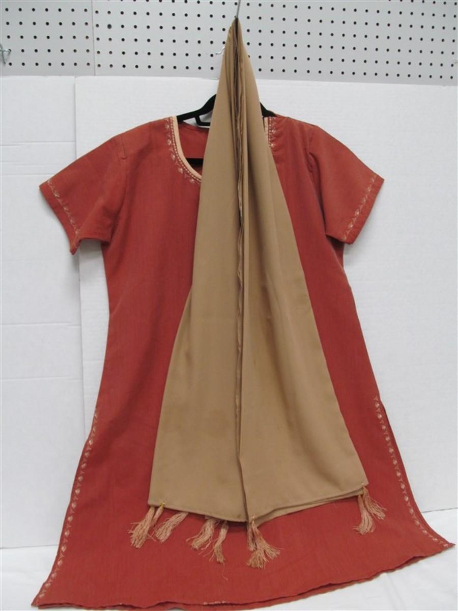 INDIAN SARI TUNIC WITH SCARF 3 PC RUST WITH IVORY TRIM BONUS PANTS