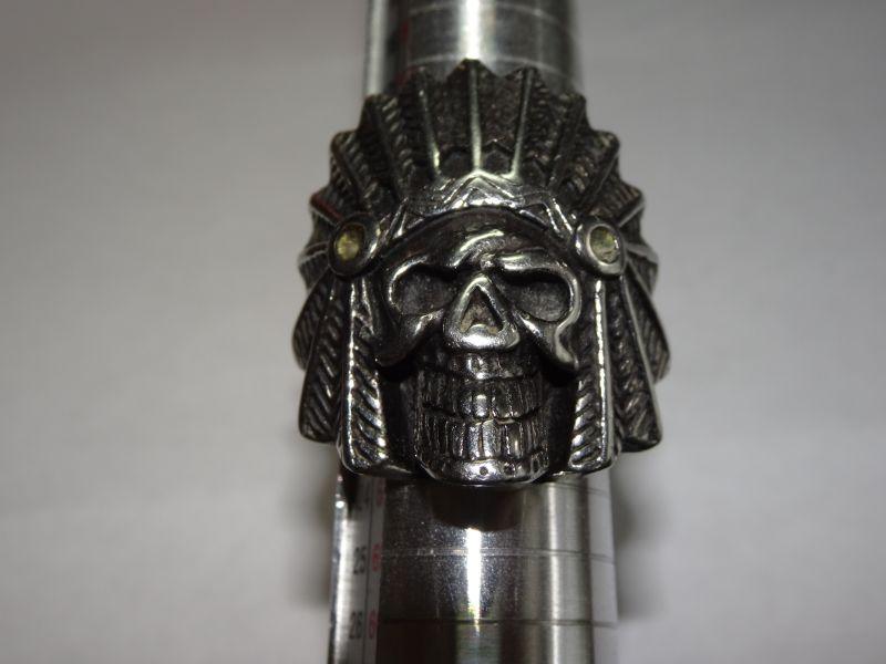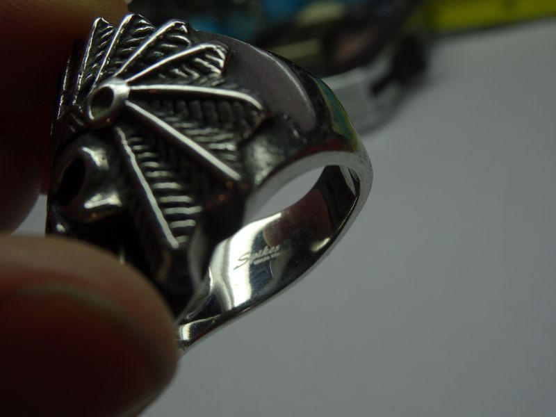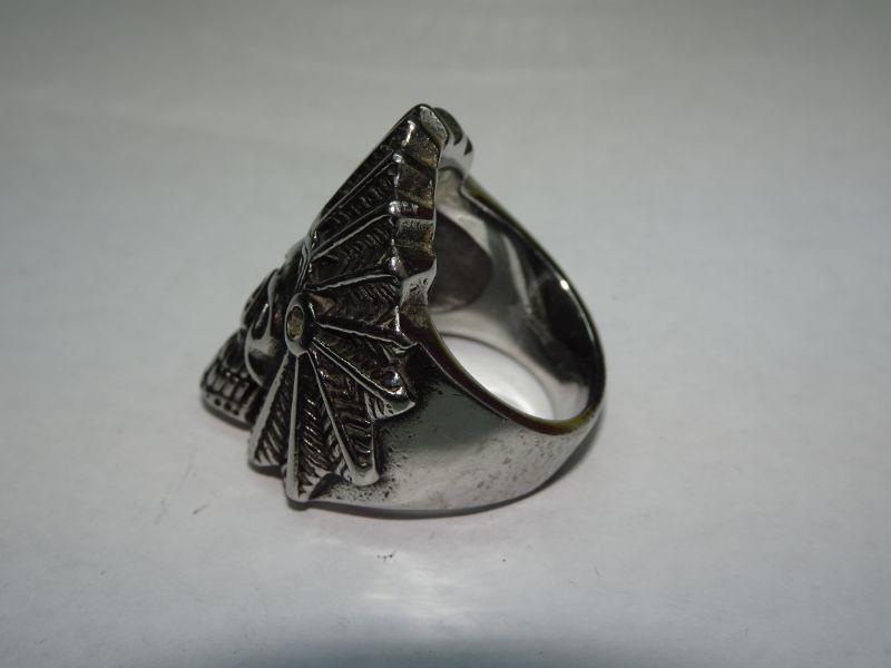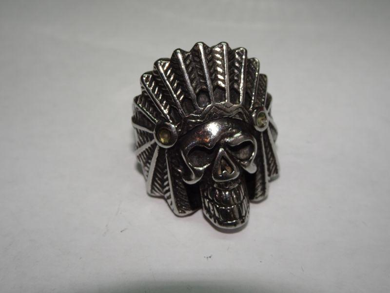 Indian Skull Ring, Southwestern, Motorcycle Style Men's Ring, Stainless