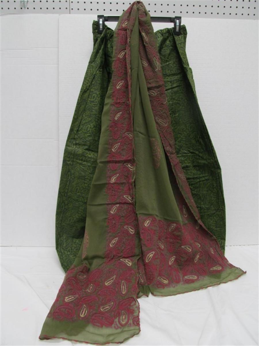INDIAN TUNIC 3 PC. GREEN & POMEGRANITE TUNIC SCARF PANTS