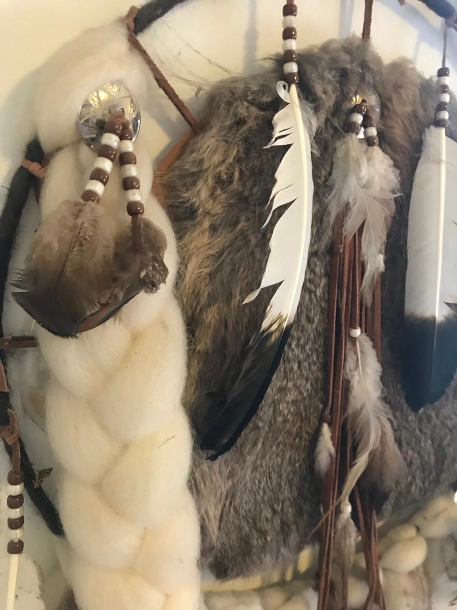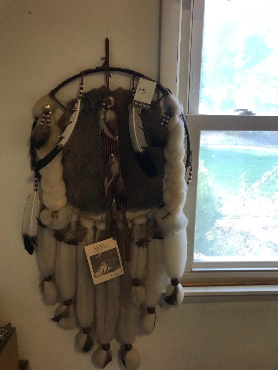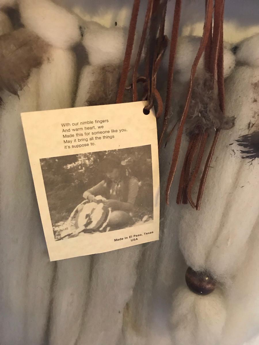 Wool & feathers, great piece with maker's information!
