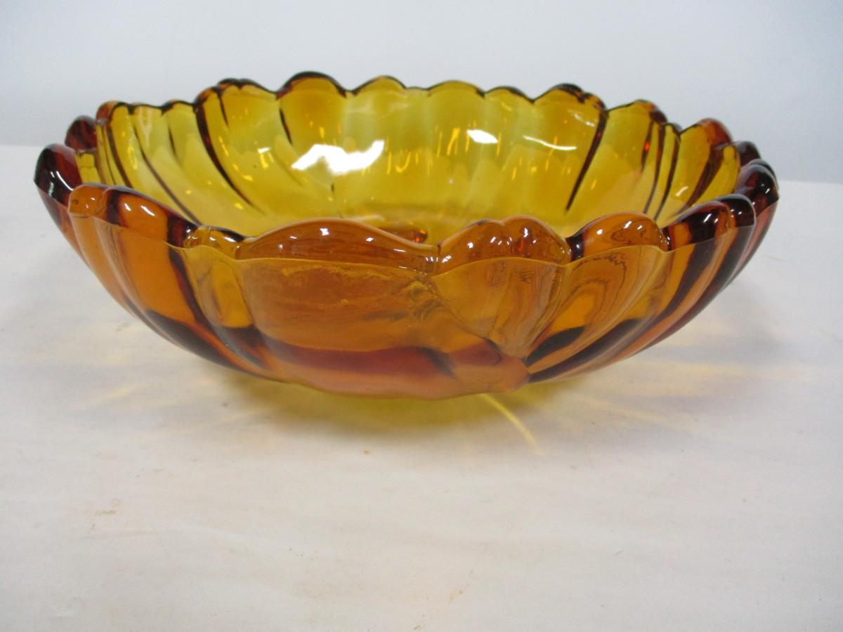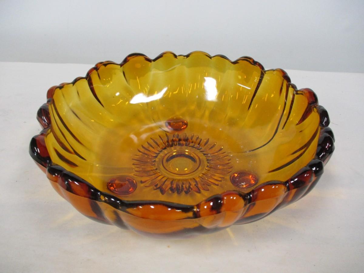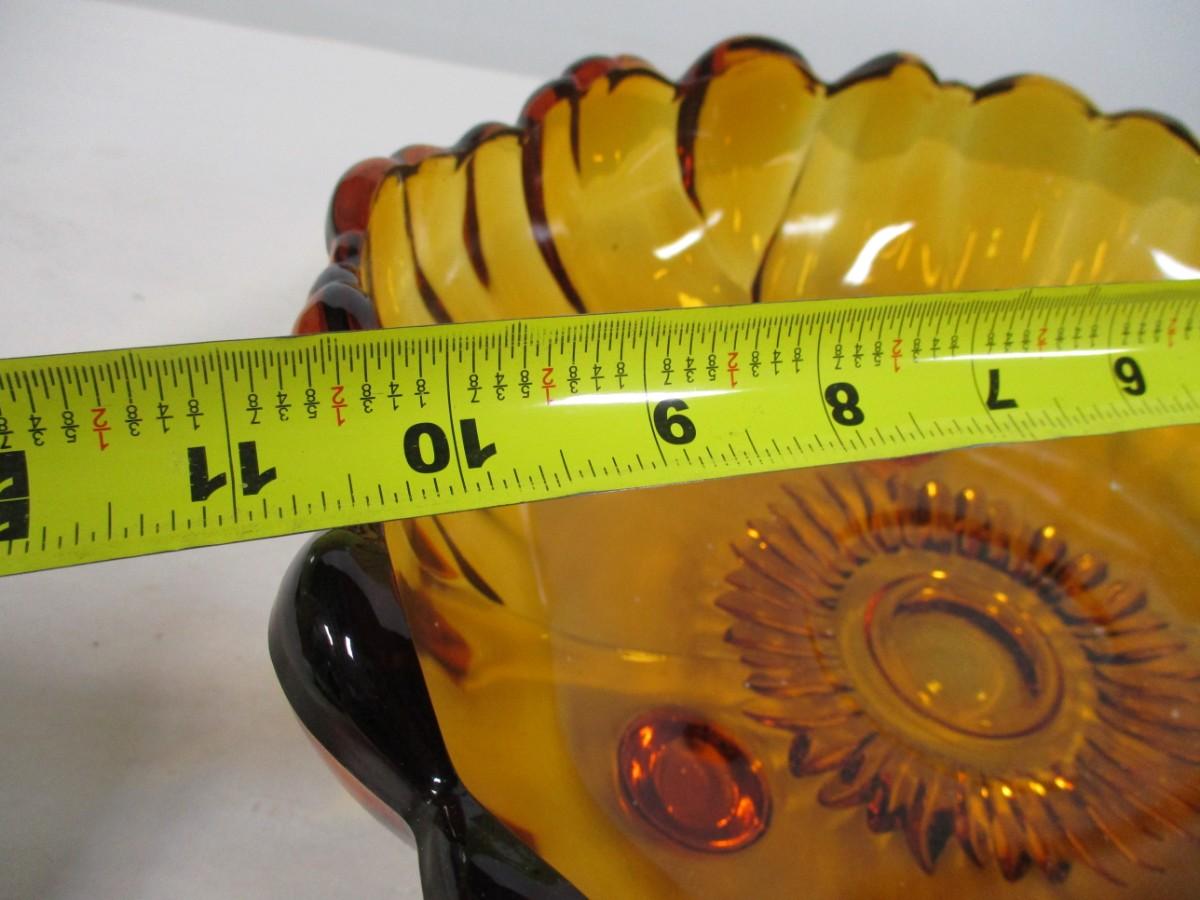 Indiana Amber Glass 11" Sunflower 3 Footed Centerpiece